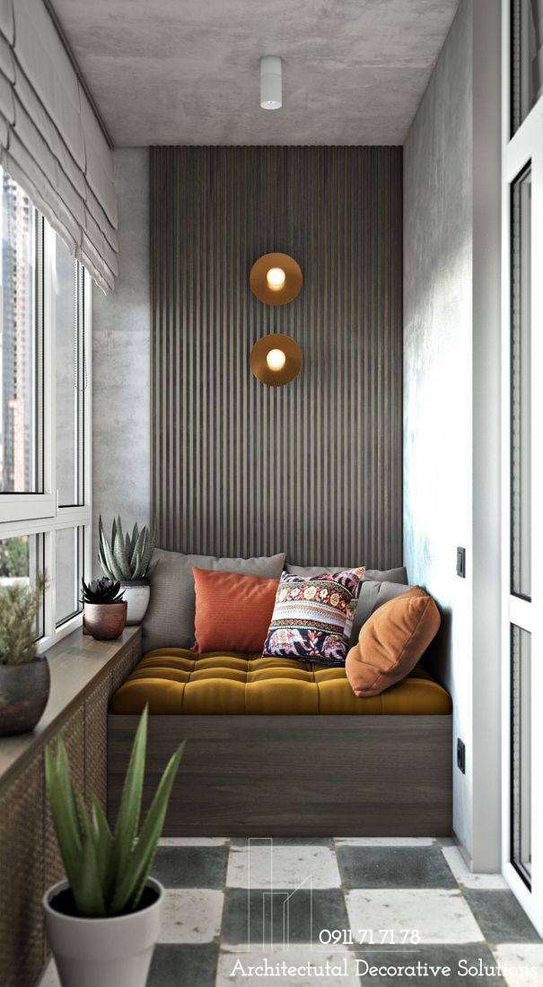 Ban công nhỏ có mái che trở thành một góc thư giãn, đọc sách vô cùng lý tưởng và thư thái.
