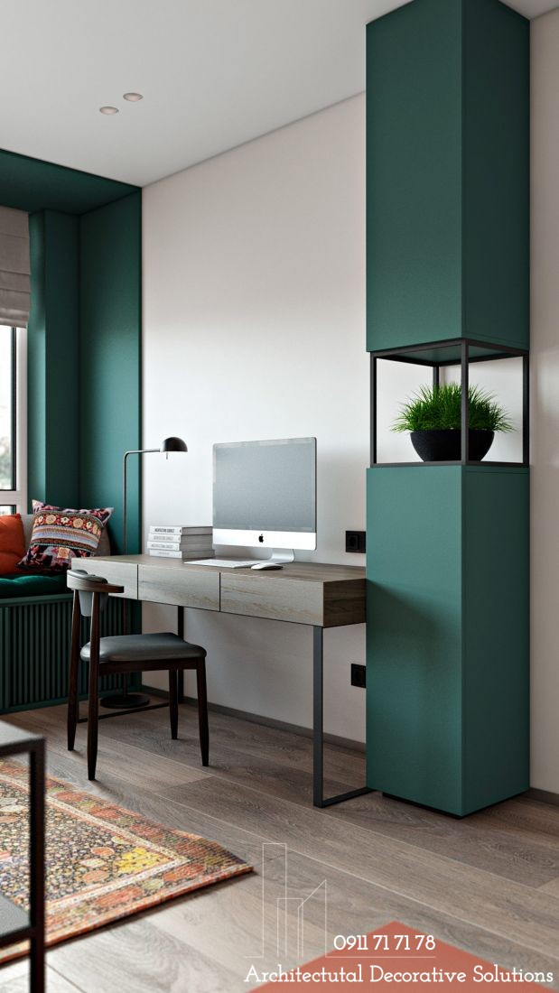 Phòng làm việc được thiết kế khá đơn giản nhưng đầy sự tinh tế, ngập tràn năng lượng.