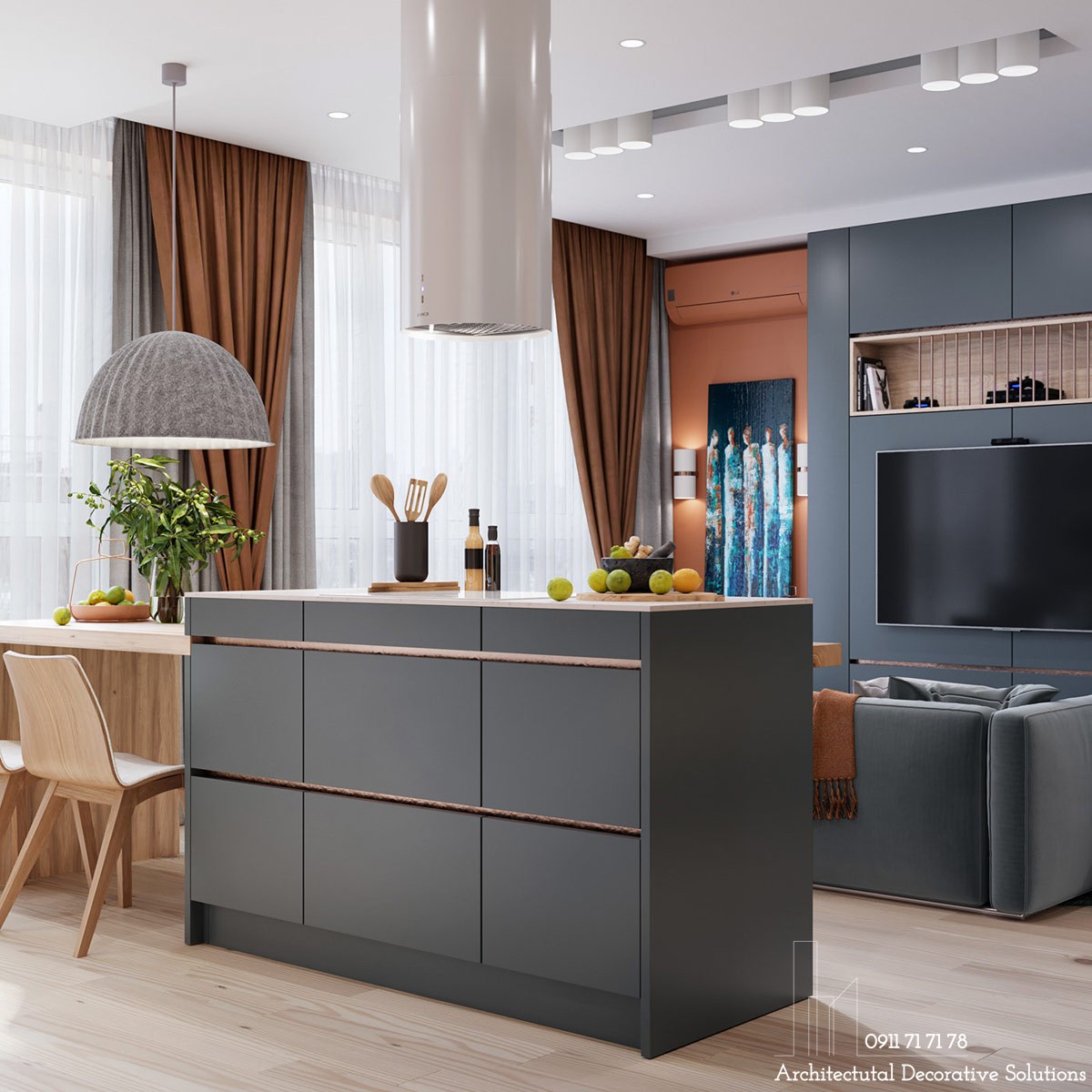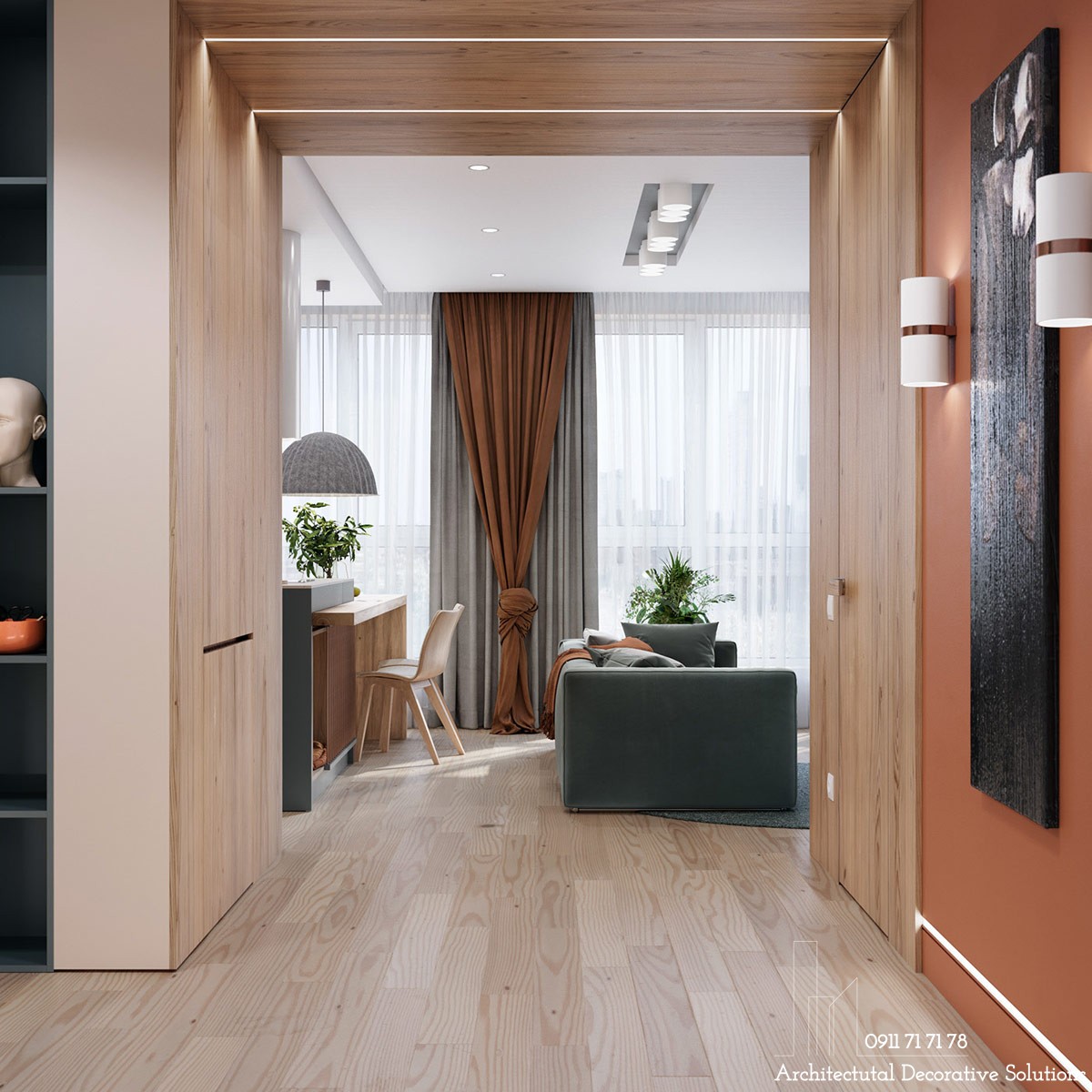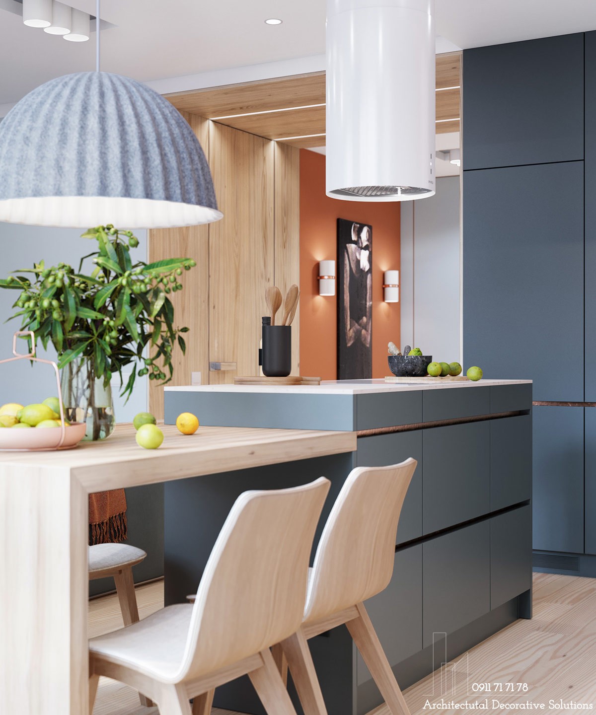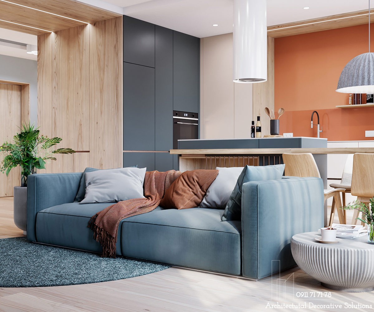 Căn Hộ Đẹp Nhẹ Nhàng Tinh Tế Với Gam Màu Trung Tín - Căn hộ 78m2 này có màu trung tính với những điểm nhấn màu cam tươi sáng, màu gỗ ấm áp, tạo một không gian nhẹ nhàng đầy tinh tế, hiện đại.