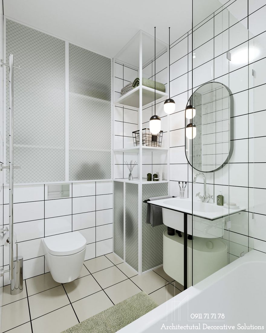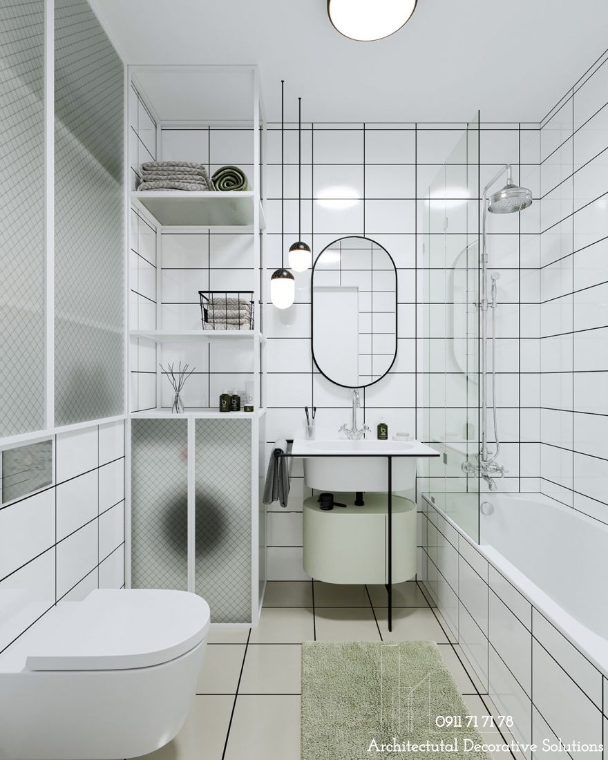 Viền đen trên nền màu trắng sẽ tạo nên dấu ấn thú vị, nổi bật trong phòng tắm này.