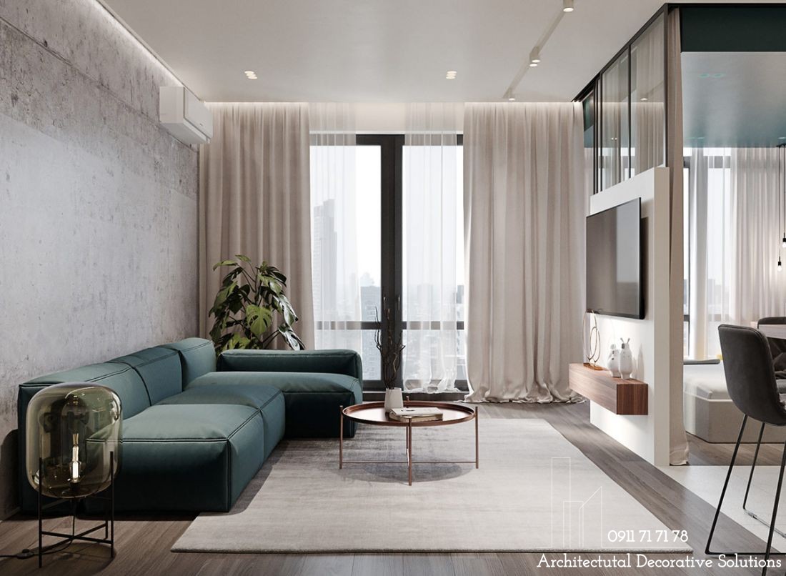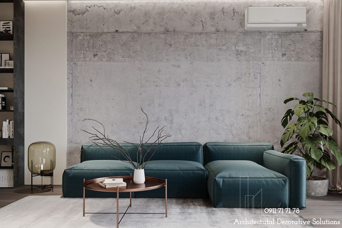 Một chiếc đèn kiểu hay một lọ cây khô... là sự cố ý của nhà thiết kế nhằm tạo nên điểm lạ mắt cho không gian phòng khách. Bộ sofa với kiểu dáng độc đáo với gam màu là xanh rêu khiến căn phòng trở nên thu hút, thú vị hơn rất nhiều. Ở phía sau bộ sofa sẽ là một mảng tường trống. Ở đó có thể trang trí một vài bức tranh nghệ thuật, tùy vào sở thích. Chỉ với một chi tiết nhỏ như vậy thôi nhưng cũng sẽ đem lại một không gian đầy cuốn hút cho ngôi nhà. Đi liền với bô sofa thì không thể thiếu chiếc bàn trà. Nếu bộ sofa đã quá độc đáo rồi thì một chiếc bàn trà đơn giản sẽ là sự lựa chọn đúng đắn nhất. Đây là một nét đẹp hiện đại đầy mạnh mẽ và tinh tế được khéo léo kết hợp lại.