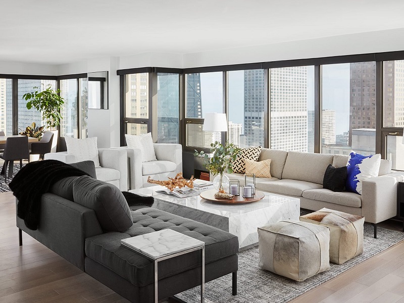 Nội thất với gam màu trung tính tạo nét tương phản trong không gian.