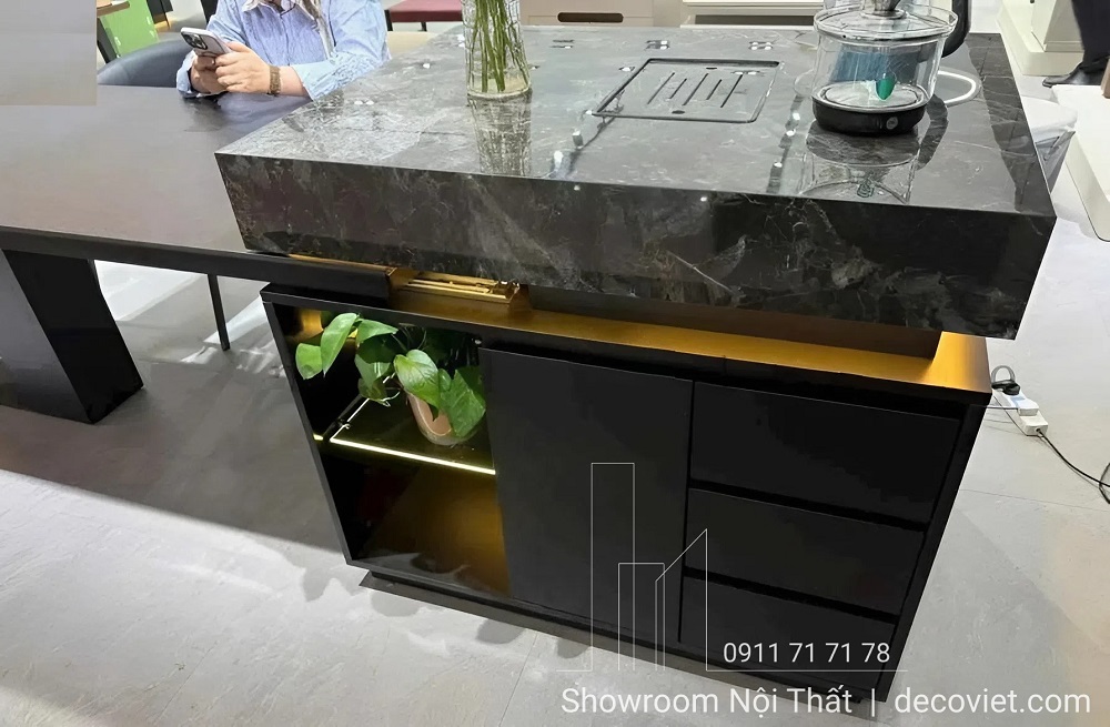 Đảo Bếp Kết Hợp Bàn Ăn Cao Cấp 2662S là giải pháp lý tưởng cho không gian bếp tiện nghi và thẩm mỹ. Mặt đá sang trọng kết hợp phần bàn gỗ nhẵn mịn, dễ vệ sinh. Bàn đảo còn được kết hợp bếp từ âm tích hợp sẵn – thuận tiện cho các thao tác nấu nước, hâm nóng hoặc chế biến nhanh ngay tại bàn.