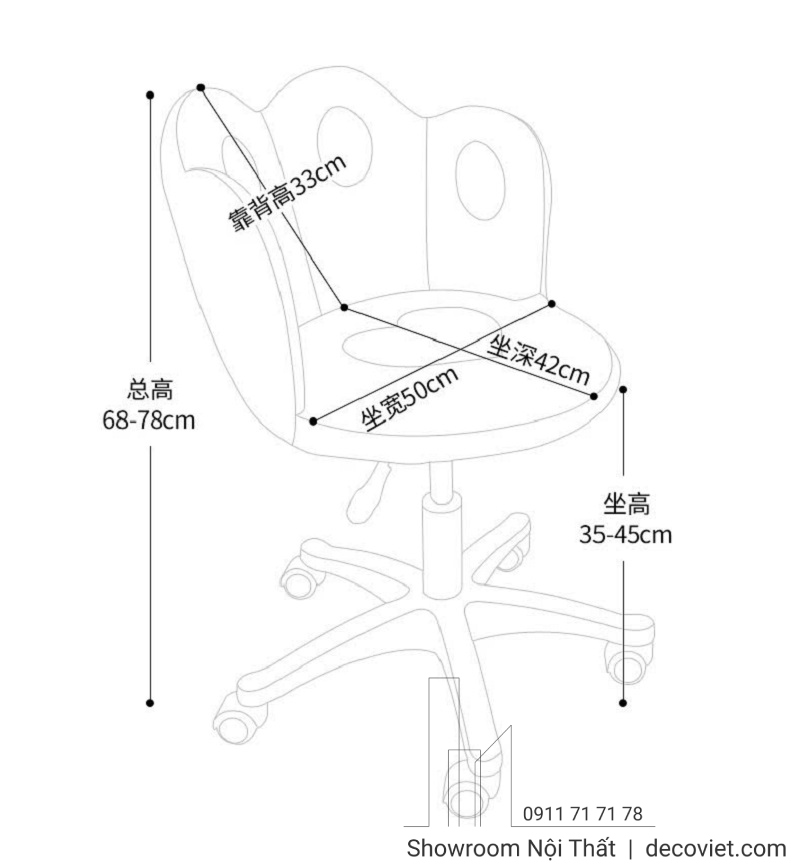 Ngay từ cái nhìn đầu tiên, Ghế Ngồi Học Dễ Thương 137S đã khiến bé mê mẩn với thiết kế tựa lưng hình chân mèo mềm mại, đáng yêu. Gam màu pastel ngọt ngào vừa làm sáng bừng không gian, vừa tạo cảm giác nhẹ nhàng, dễ chịu khi sử dụng. Bề mặt ghế êm ái, ôm trọn cơ thể, kết hợp chân xoay 360° linh hoạt giúp bé thoải mái di chuyển, học bài hay vui chơi một cách tự nhiên. Không dừng lại ở tính thẩm mỹ, chiếc ghế còn hỗ trợ bé ngồi đúng tư thế, hạn chế mỏi lưng và góp phần bảo vệ cột sống, giúp hình thành thói quen học tập khoa học ngay từ sớm.