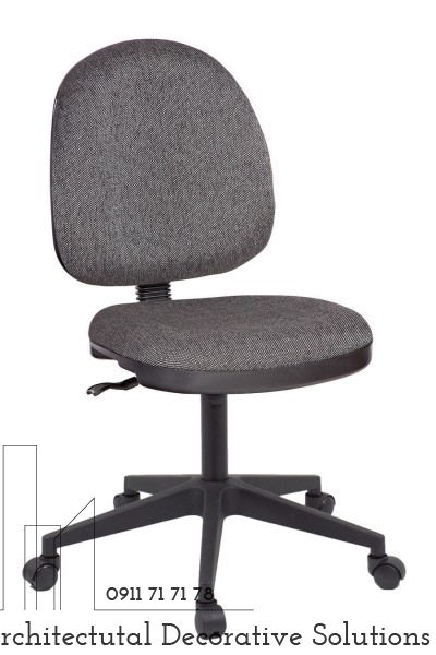 Chất liệu: Nệm bọc vải hoặc simili, không tay, mâm cố định, chân xoay nhựa.