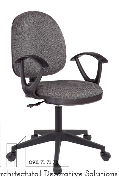 Chất liệu: Nệm bọc vải hoặc simili, tay nhựa, mâm cố định, chân xoay nhựa.