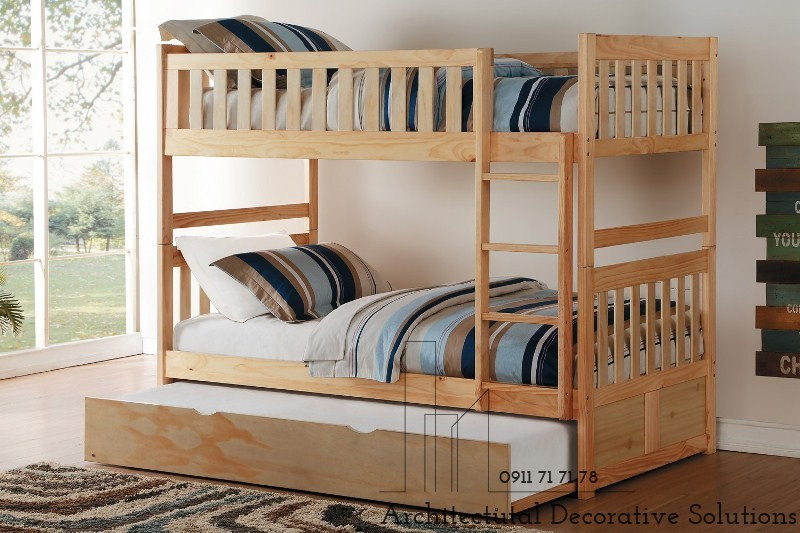 Giường 3 Tầng 414T – Vàng Gỗ được thiết kế đẹp với các họa tiết trang trí. Nếu như trước đây, hình ảnh giường tầng khiến bạn liên tưởng tới những căn phòng Ký túc xá sinh viên thì hiện tại có khá nhiều gia đình đã bắt đầu sử dụng giường tầng vào không gian nội thất của gia đình. Đa số sử dụng giường tầng là để dành cho các bé khi mà các bé bắt đầu có nhu cầu ngủ riêng. Nếu nhà bạn không có nhiều phòng hoặc không gian nhà bạn hơi nhỏ, bạn có thể sử dụng những chiếc giường tầng tiết kiệm diện thích rất hiện đại và trẻ trung cho phòng bé. Những chiếc giường ngủ bằng gỗ tự nhiên được sơn phủ màu sắc tươi sáng, nhỏ gọn vừa tiết kiệm không gian phòng ngủ, vừa làm cho không gian của bé trở nên đáng yêu và xinh xắn hơn.