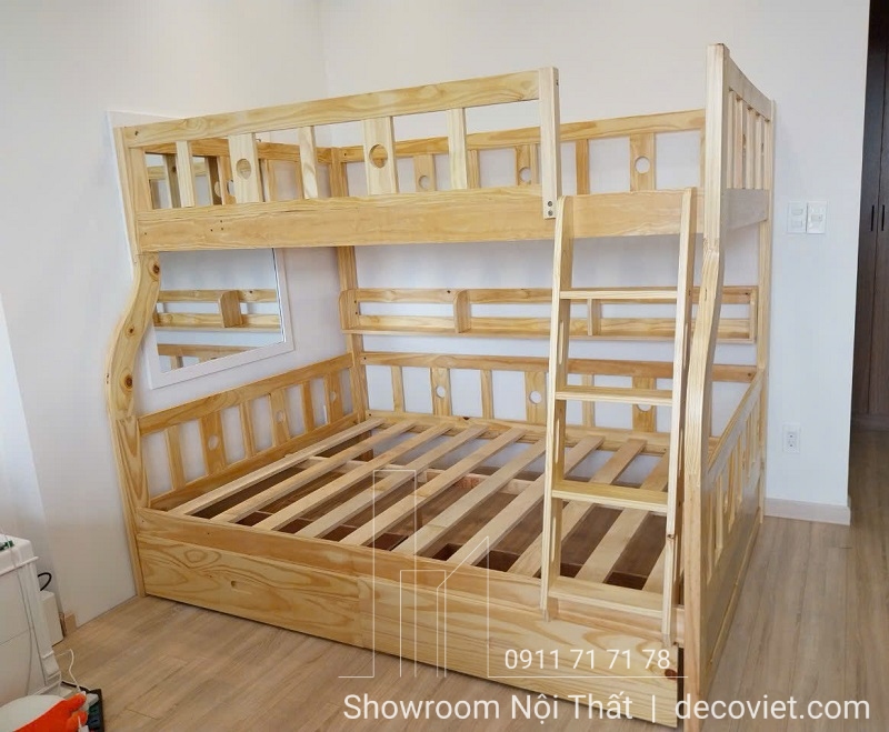 Một trong những yếu tố quan trọng nhất khi lựa chọn giường tầng gỗ cho bé chính là độ an toàn trong quá trình sử dụng. Tại DecoViet, mọi chiếc giường tầng đều được thiết kế với lan can bảo vệ cao, vững chắc, ôm sát mép giường tầng trên để hạn chế tối đa nguy cơ té ngã khi bé xoay trở lúc ngủ.