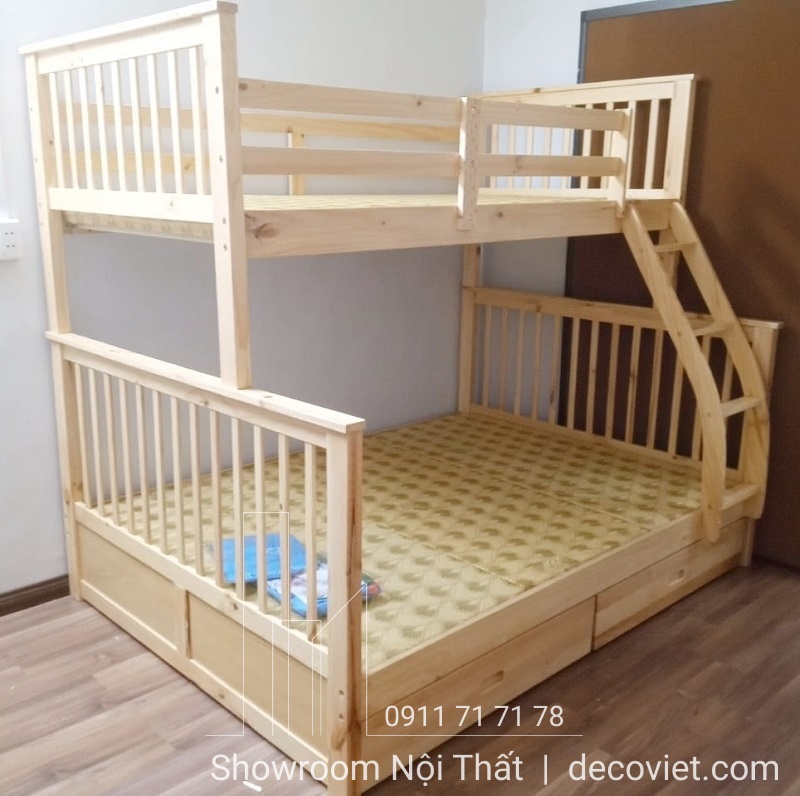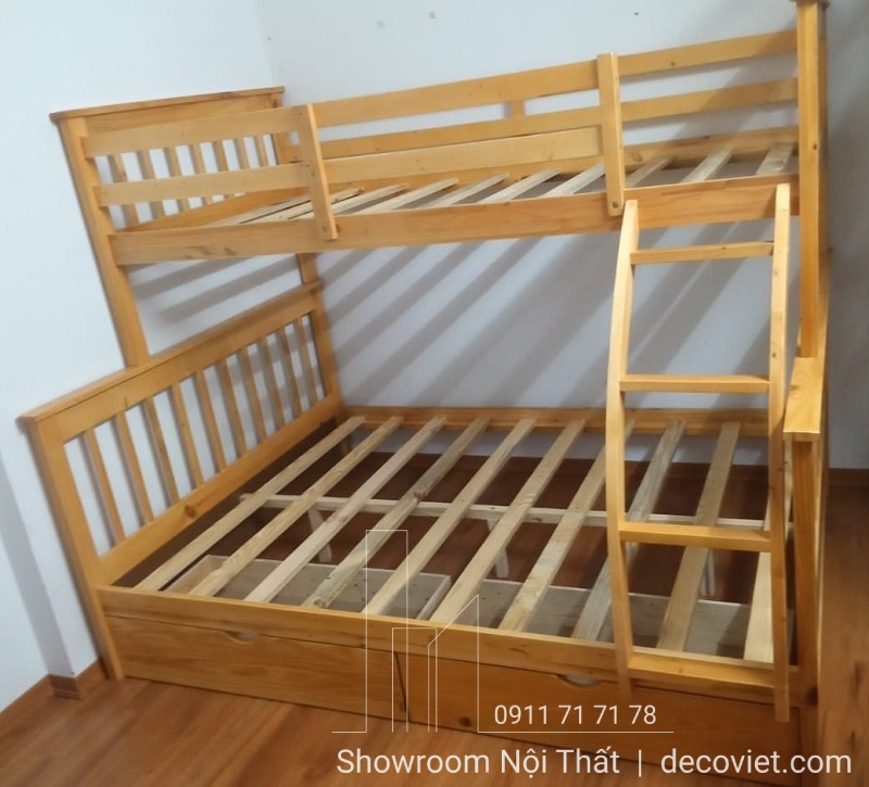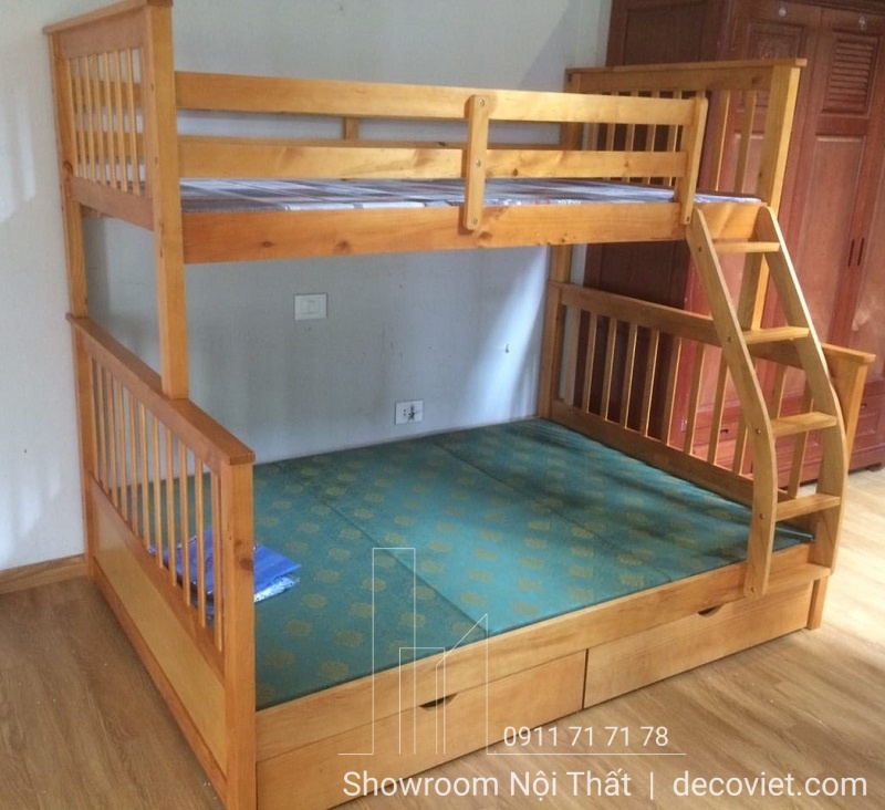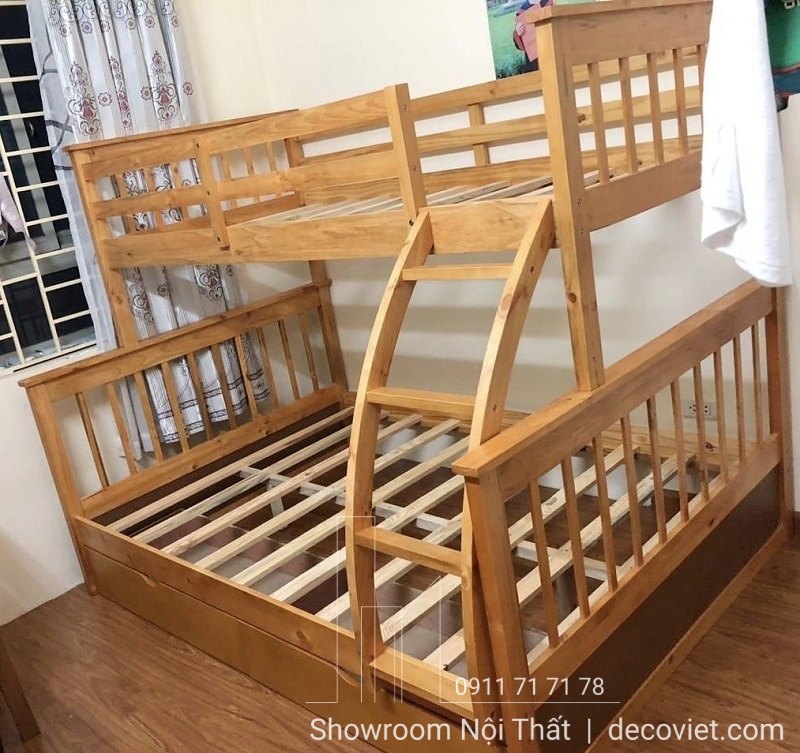 • Giường gỗ 2 tầng gỗ thông có độ đàn hồi, thoáng khí và dẫn nhiệt tốt, vì thế rất dễ dàng trong việc bảo quản và sử dụng.