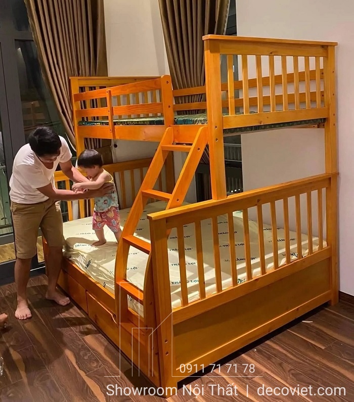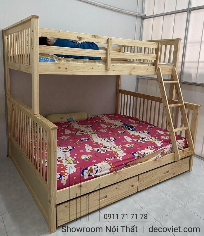 • Chất liệu giường tầng cao cấp từ gỗ thông Newzealand tự nhiên đã qua xử lý, chống cong vênh mối mọt và có độ bền đẹp theo thời gian sử dụng.