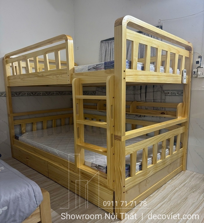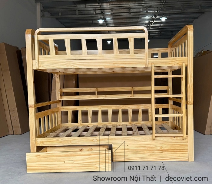 Giường tầng không chỉ là giải pháp tuyệt vời giúp tiết kiệm không gian mà còn mang lại một không gian vui chơi và nghỉ ngơi đầy sáng tạo. Giường Tầng Đẹp 444T là sự lựa chọn lý tưởng để các bé có thể cùng nhau chia sẻ không gian, giúp thắt chặt tình cảm gia đình. Với chất liệu gỗ thông NewZealand cao cấp, giường tầng gỗ mang lại sự bền bỉ vượt trội và an toàn tuyệt đối cho trẻ. Với thiết kế hiện đại, tối giản, mẫu giường tầng đẹp không chỉ giúp tối ưu hóa diện tích phòng ngủ mà còn làm cho không gian sống trở nên gọn gàng, ngăn nắp và sang trọng. Đây là một món đồ nội thất thông minh, giúp gia đình bạn tận dụng tối đa không gian mà vẫn giữ được sự thoải mái và tiện nghi nhất.