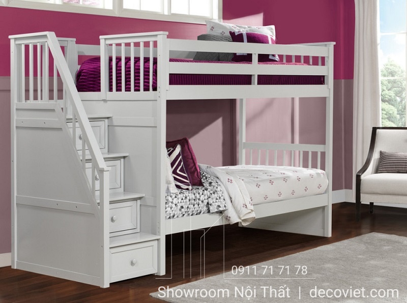 + Giường tầng tích hợp tủ: Đây là kiểu giường tầng nguyên khối được tích hợp với tủ quần áo và ngăn kéo ở phía bên dưới gầm giường mang đến sự gọn gàng, ngăn nắp. Tuy nhiên, những dạng giường này sẽ thường có giá thành cao hơn bởi được thiết kế tỉ mỉ và tốn nhiều công sức hơn.