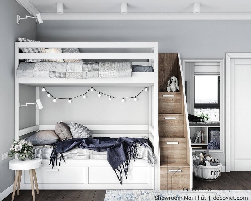 - Tăng thêm không gian lưu trữ: Khi bạn chọn giường tầng cho người lớn có tích hợp cả ngăn tủ lưu trữ, hộc tủ cầu thang,... sẽ cung cấp thêm không gian lưu trữ để bạn sắp xếp quần áo hoặc những món đồ chơi, vật dụng cần thiết.