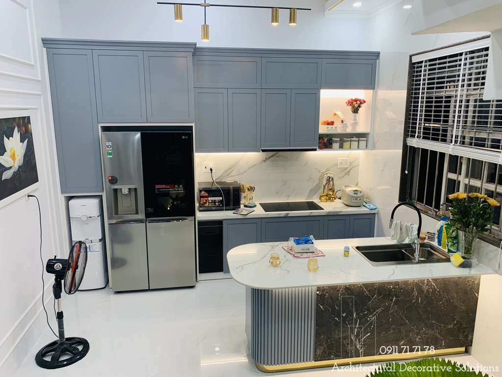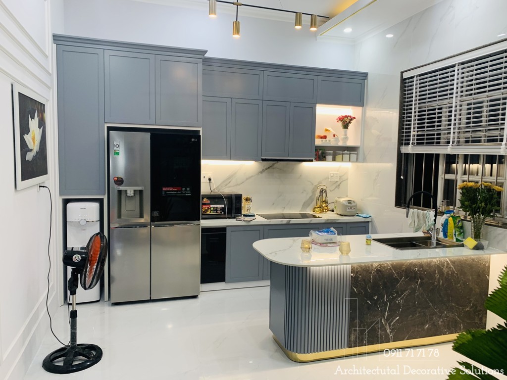 Với các đường nét phóng khoáng kết hợp cùng sự mạnh mẽ tạo nên hiệu quả đặc biệt và làm tăng thêm sự thu hút cho không gian phòng bếp của biệt thự.
