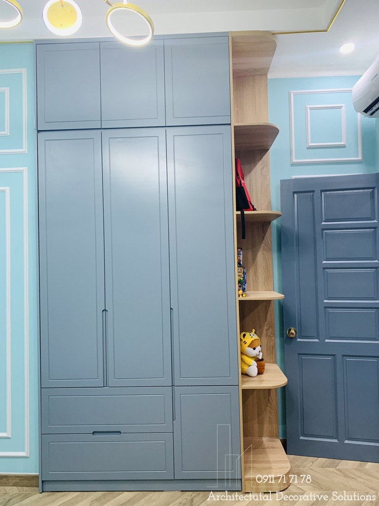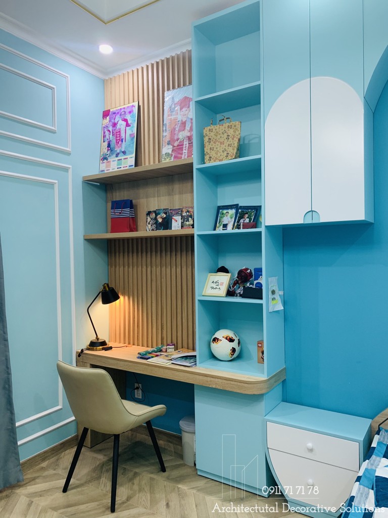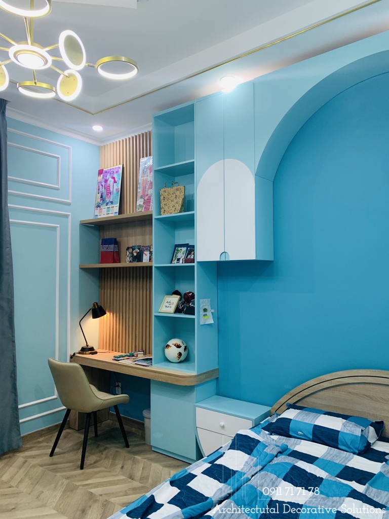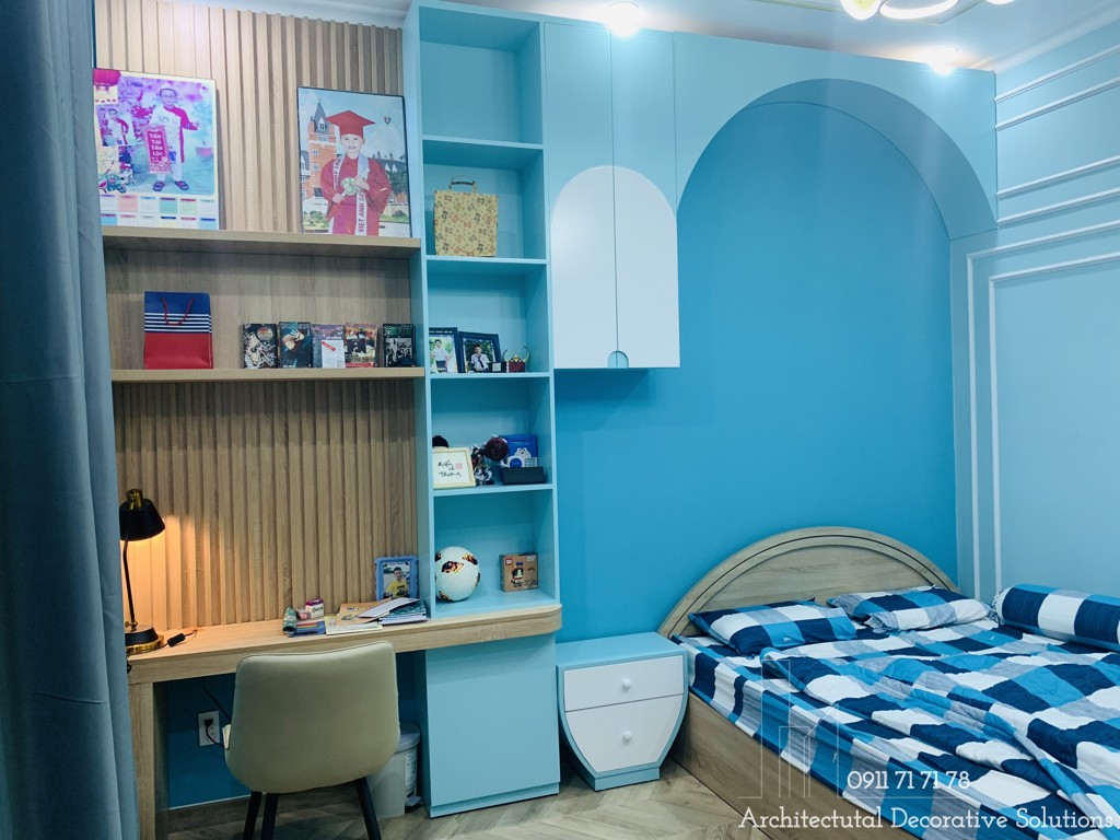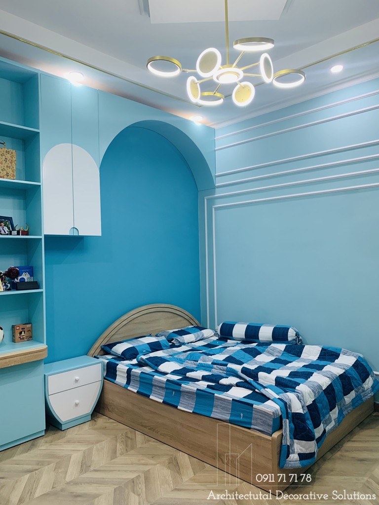 Phòng ngủ cho bé màu xanh dương mang đến cảm giác êm dịu, thư giãn, tinh thần thoải mái. Màu xanh dương đậm đại diện cho sự tin tưởng, phẩm chất, sự thông minh. Phòng ngủ màu xanh dương đậm toát lên vẻ sang trọng nên được nhiều gia chủ ưa chuộng.