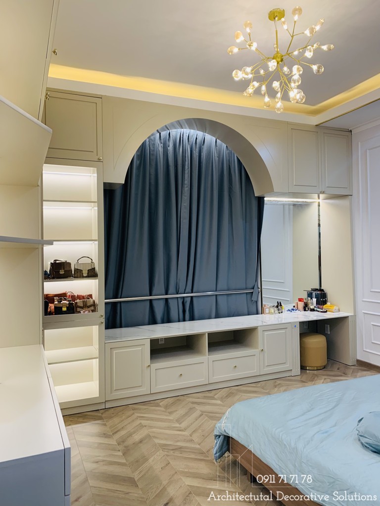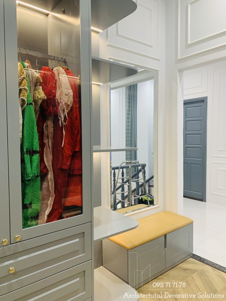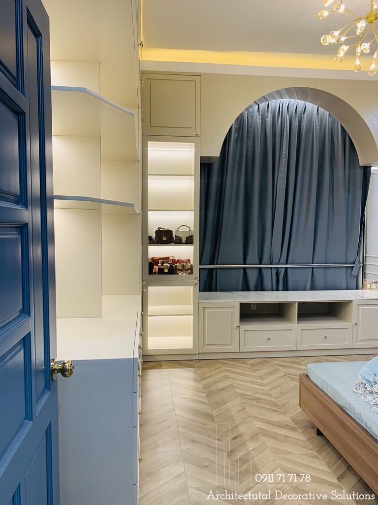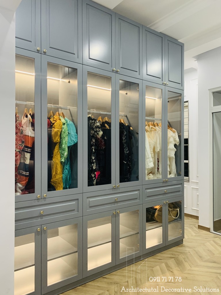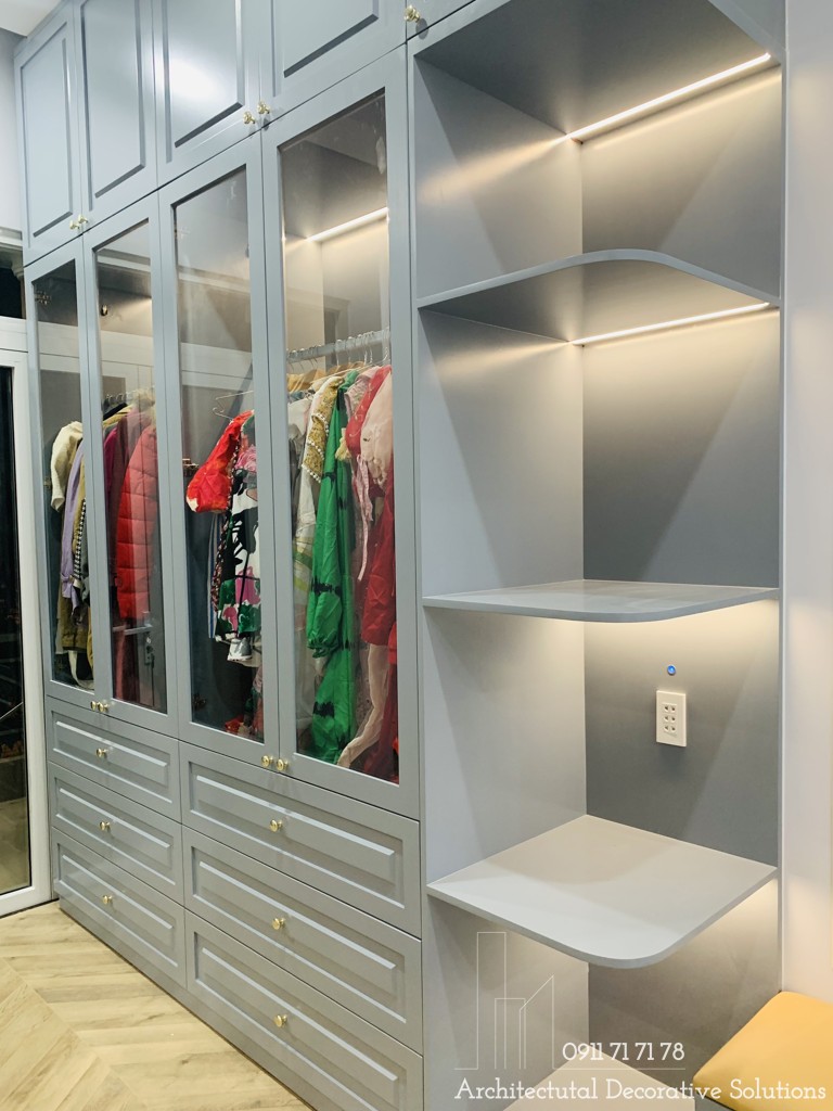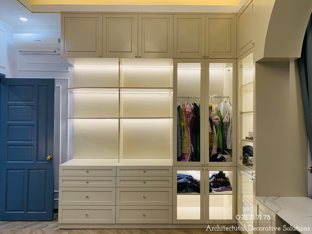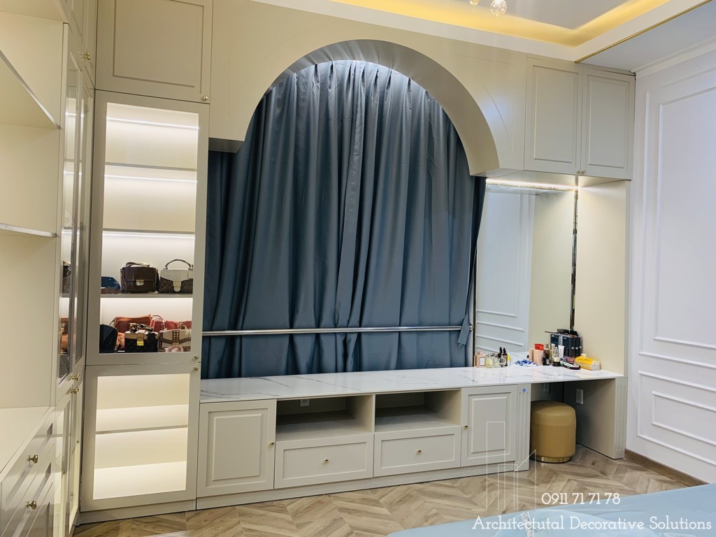 Phòng thay đồ ngoài quần áo ra sẽ có rất nhiều loại phụ kiện khác nhau như giày dép, túi xách, cavat ,… vì vậy việc sắp xếp các tủ đồ, phân chia các khu vực để các nhóm đồ sao cho khoa học, hợp lý, đảm bảo sự lưu trữ gọn gàng, tránh thất lạc rất là quan trọng. Không gian lưu trữ đồ đạc được tính toán và thiết kế hợp lý từ không gian treo, không gian đồ gấp đến không gian mà tủ đồ chiếm dụng, vừa đạt hiệu quả thẩm mỹ và đáp ứng được diện tích cho không gian.