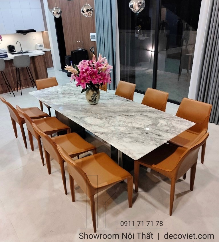 • Bàn ăn hiện đại với mặt đá marble sang trọng