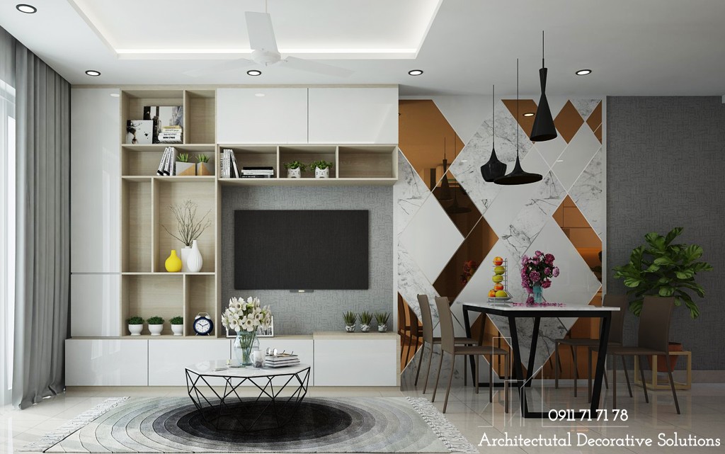 Phòng khách liền bếp phù hợp xu hướng hiện đại