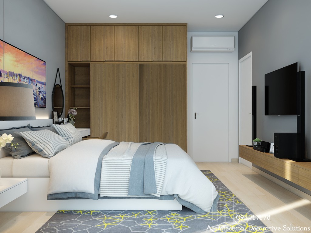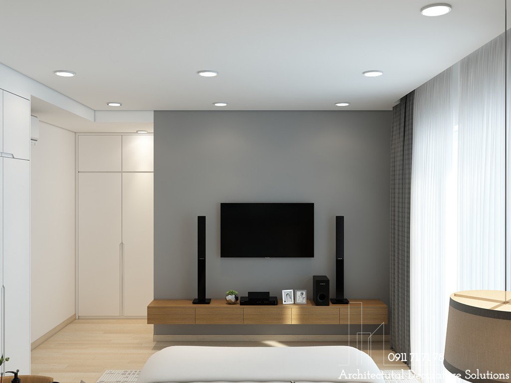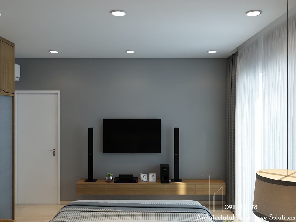 Phòng ngủ cũng được lắp đặt TV