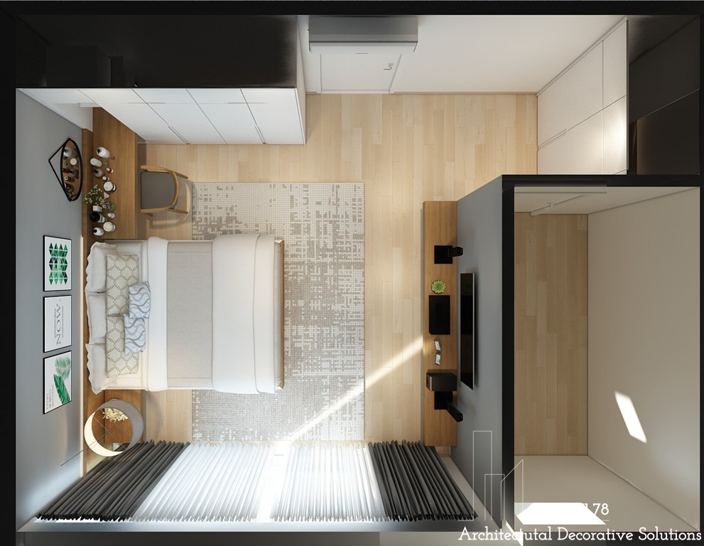 Phòng ngủ được thiết kế vô cùng tối giản và đầy khoa học