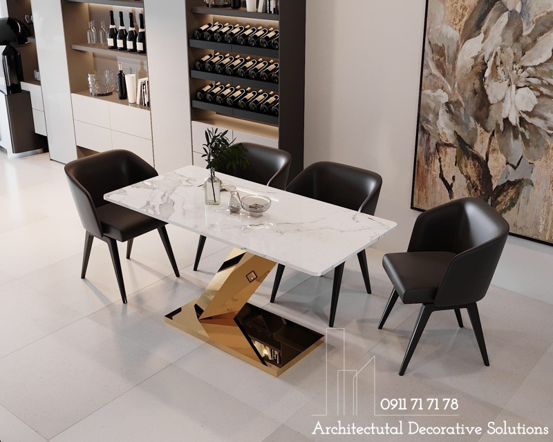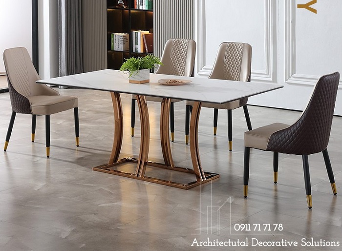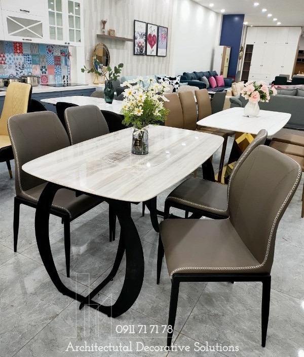 Nhờ sự đa dạng này, bàn ăn mặt đá có thể đáp ứng được nhiều phong cách nội thất khác nhau, dễ dành kết hợp cùng các chất liệu chân bàn khác nhau như sắt sơn tĩnh điện, inox mạ vàng hay chân gỗ cao cấp, giúp tăng thêm tính thẩm mỹ và độ linh hoạt trong bố trí không gian.