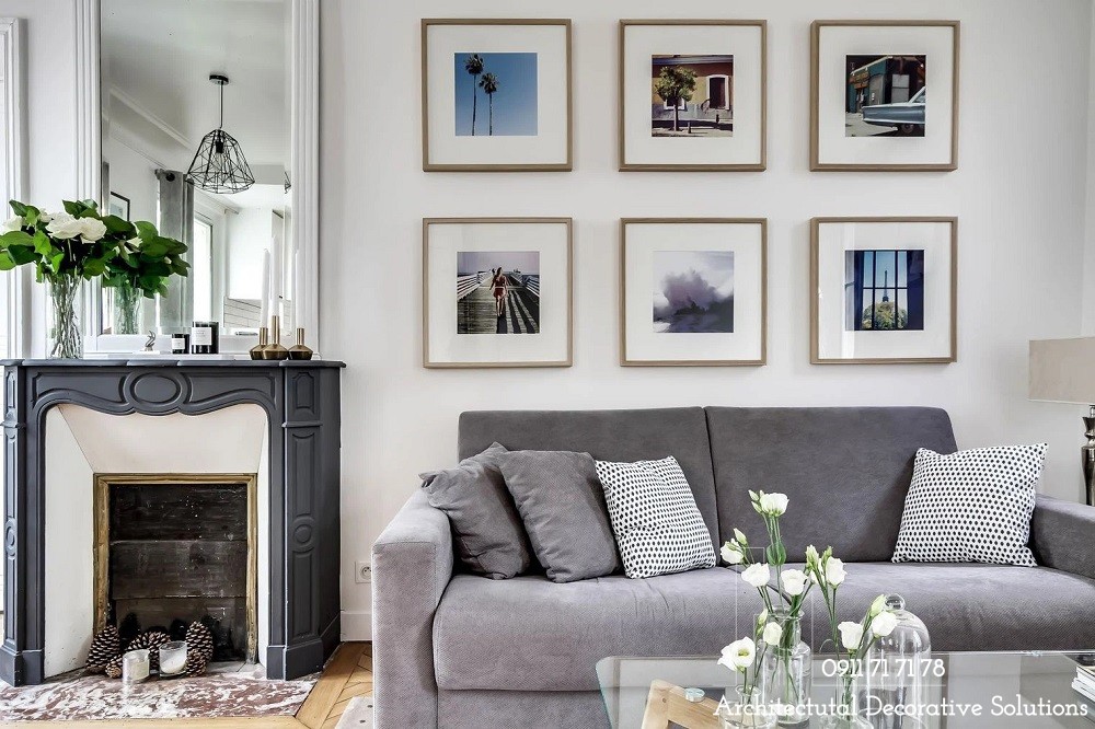 Nhà thiết kế sử dụng các gam màu trung tính cho phòng khách.