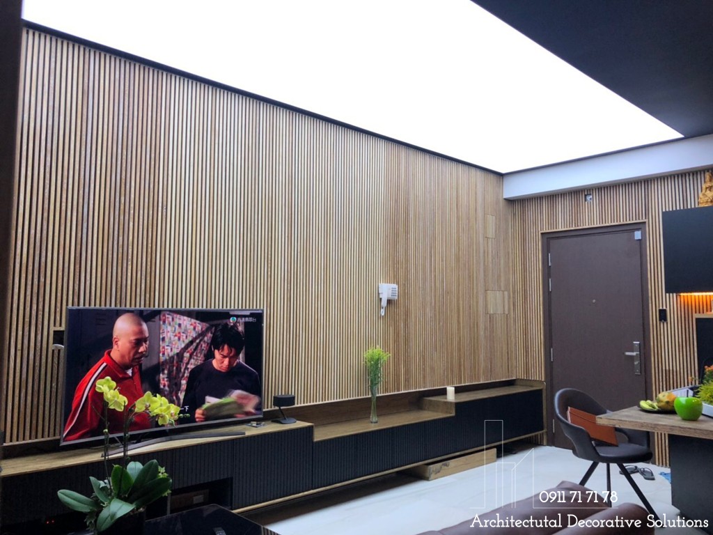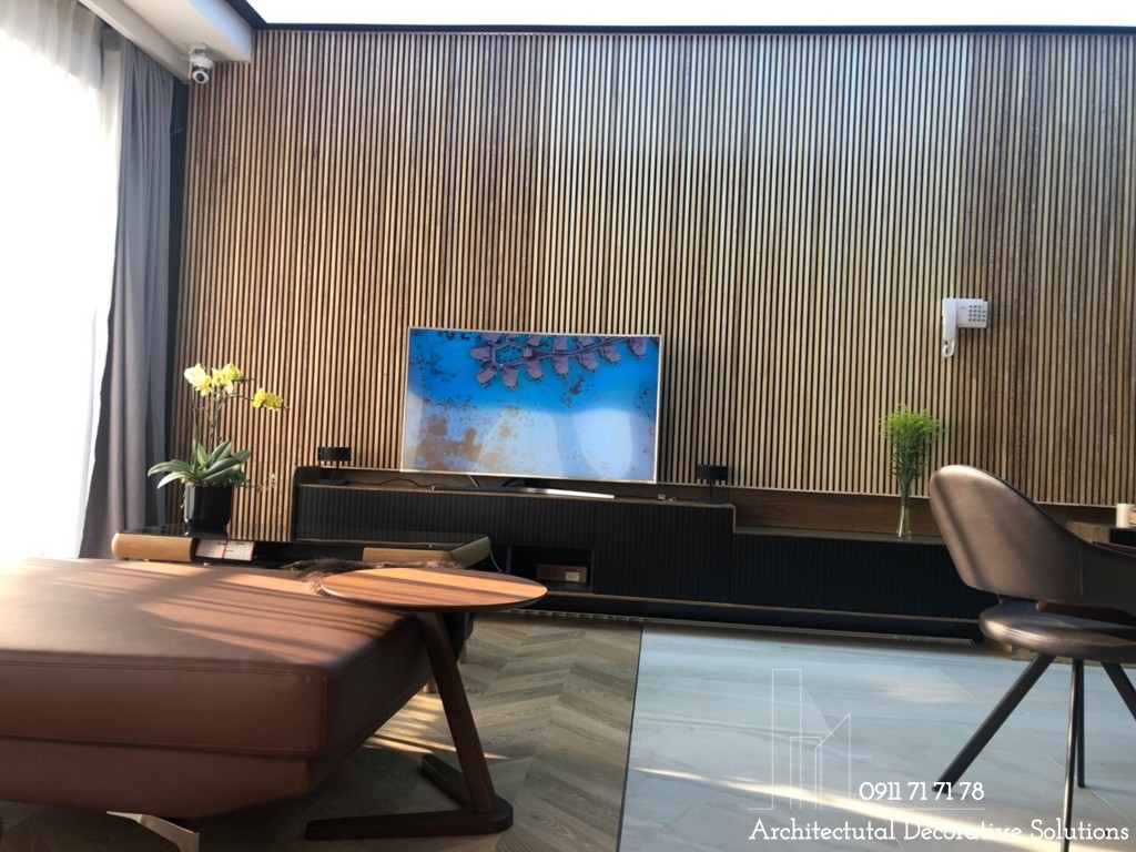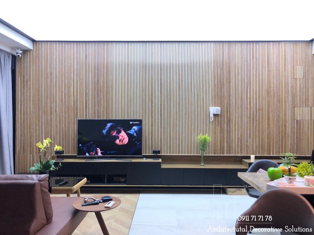 Mảng tường đẹp mắt làm nổi bật không gian phòng khách