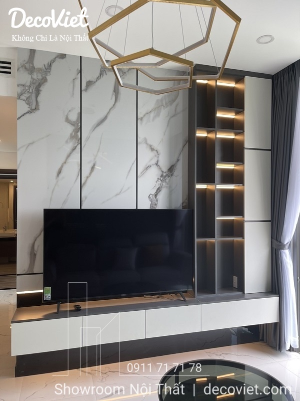 Thiết kế thi công phòng khách hiện đại mang đến sự tiện lợi tối đa trong quá trình sinh hoạt. Sắp xếp không gian y vừa đảm bảo tính thẩm mỹ cũng như công năng sử dụng. Sử dụng kệ tivi tích hợp kệ trang trí giúp phòng khách hiện đại, tiện nghi và ấn tượng hơn.