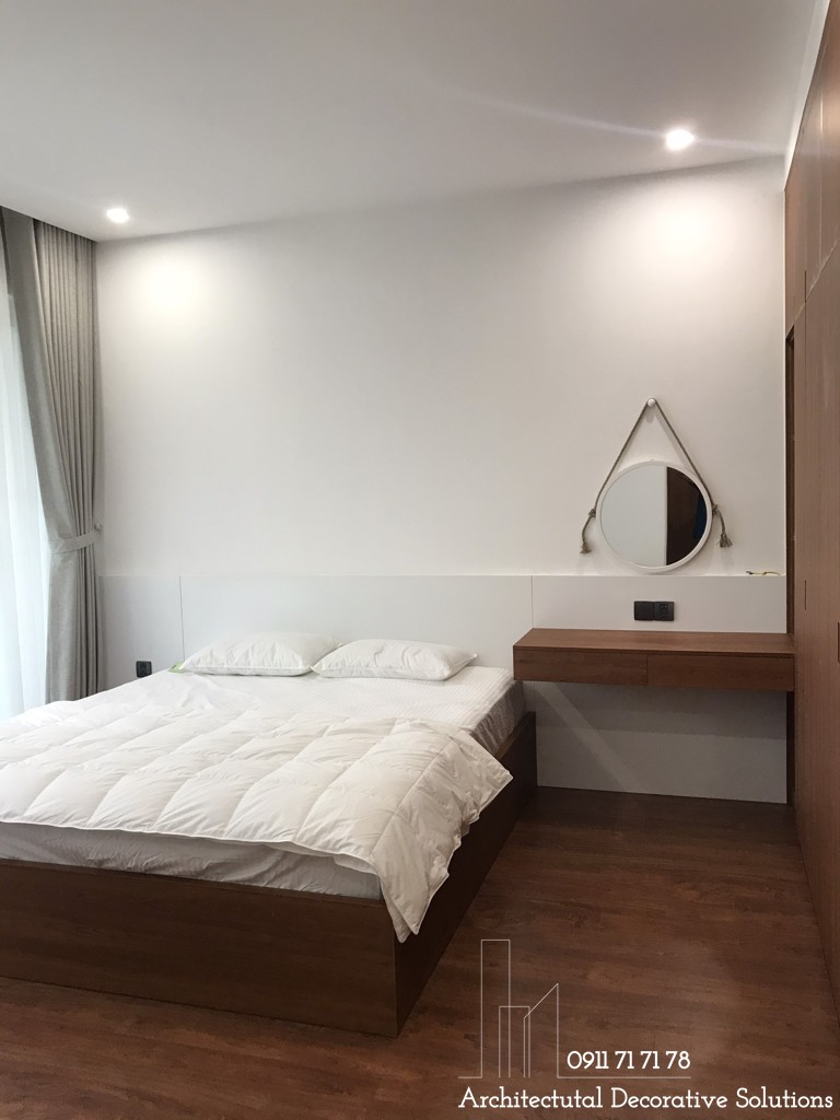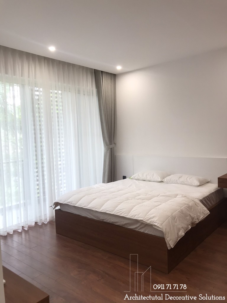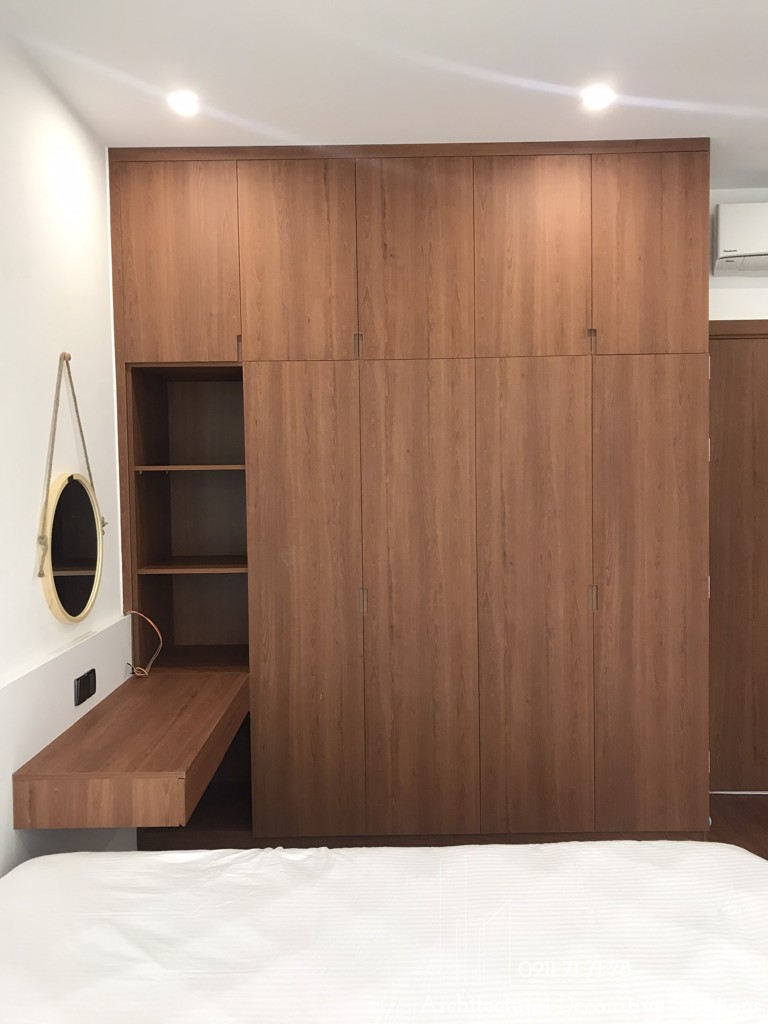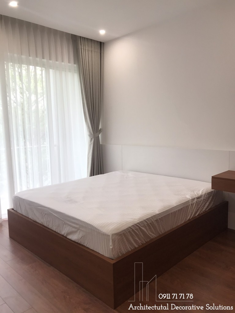 Phòng ngủ được thiết kế với nội thất gỗ từ các chi tiết giường ngủ, tủ quần áo, bàn trang điểm... Các khu vực phân chia hợp lí và khoa học. Không gian vô cùng ấm cúng và sang trọng.