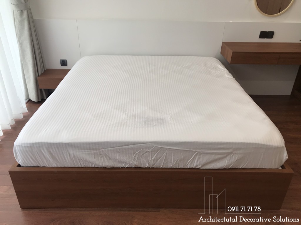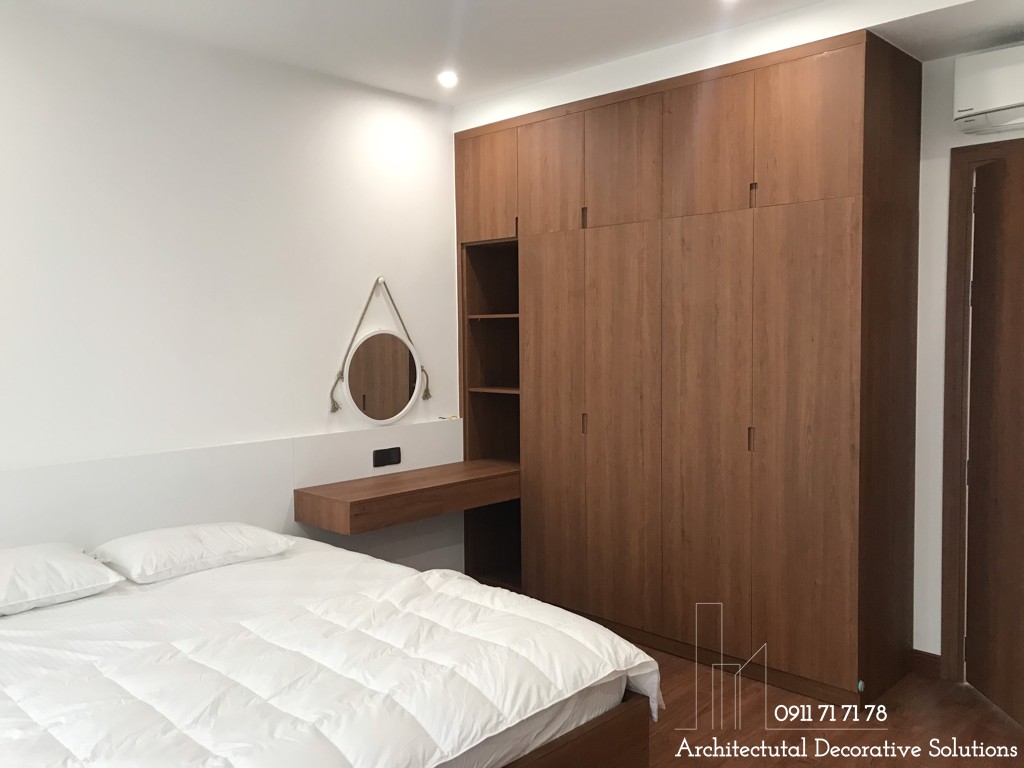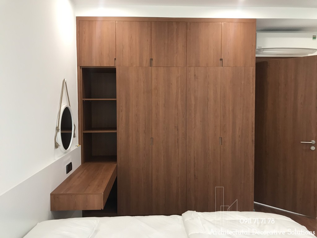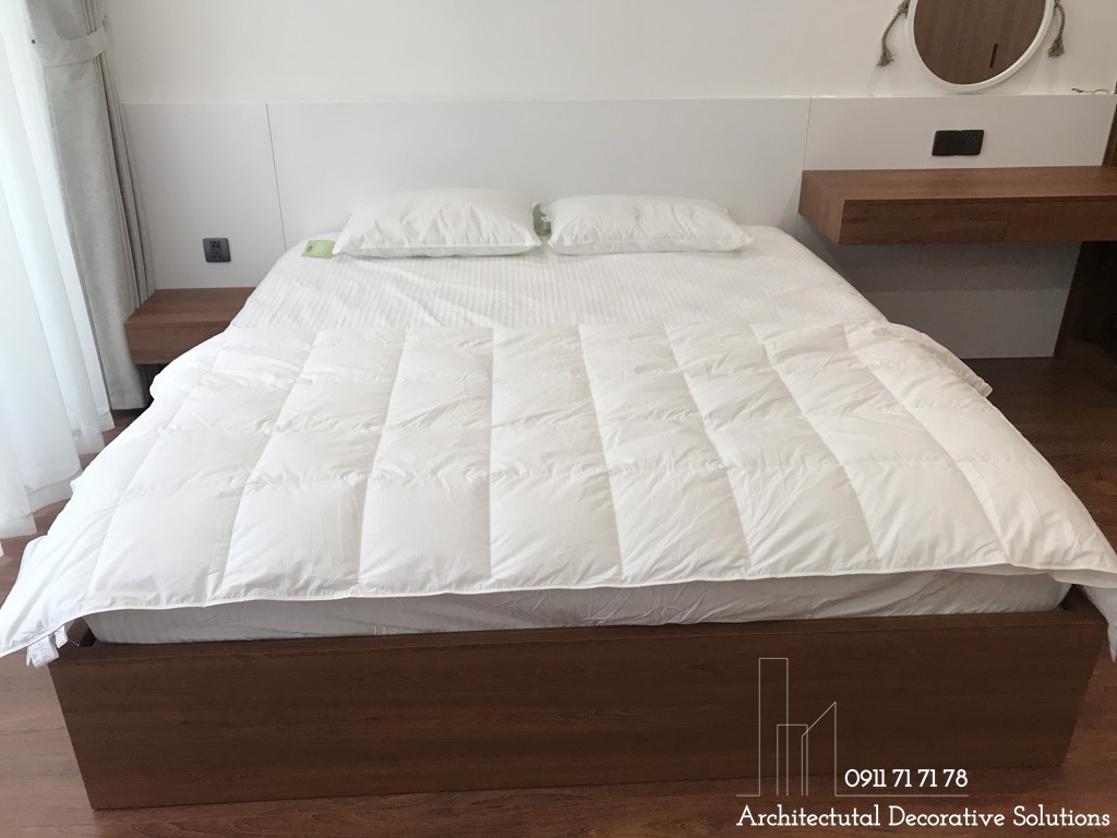 Phòng ngủ được thiết kế với nội thất gỗ từ các chi tiết giường ngủ, tủ quần áo, bàn trang điểm... Các khu vực phân chia hợp lí và khoa học. Không gian vô cùng ấm cúng và sang trọng.