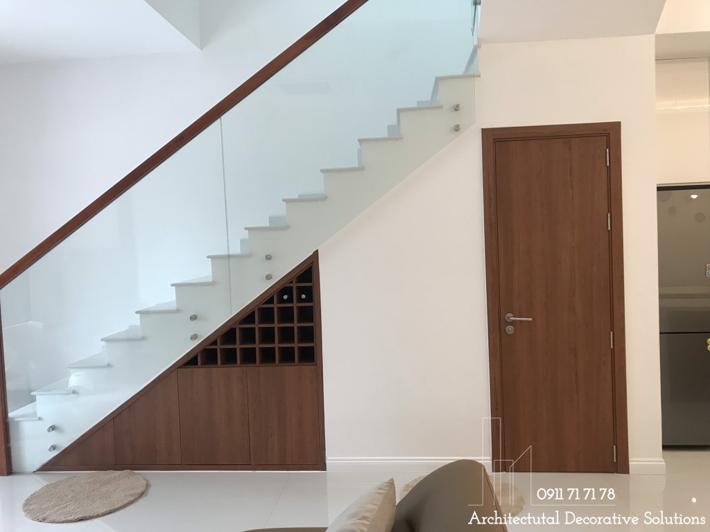 Hệ thống tủ rượu dưới gầm cầu thang được thiết kế độc đáo