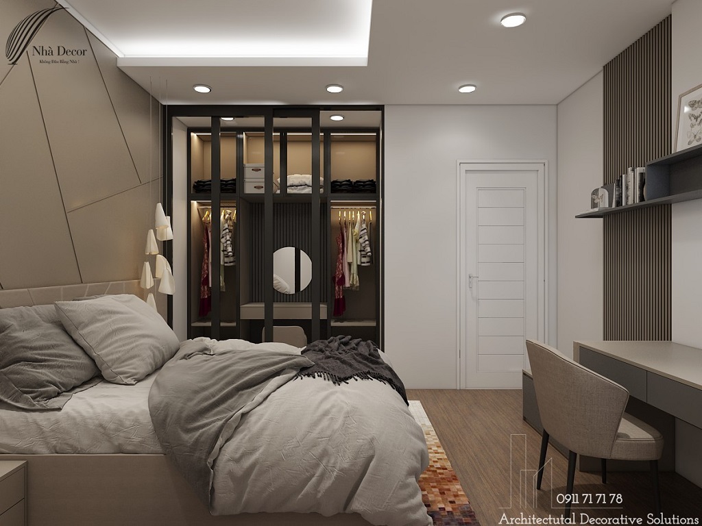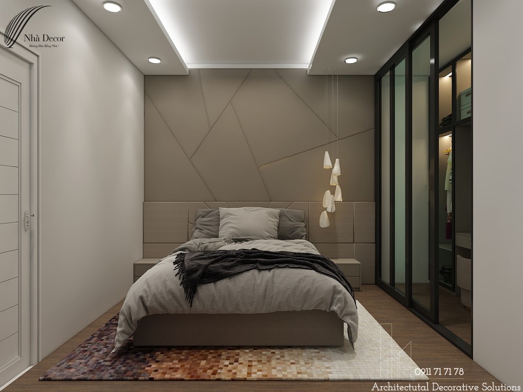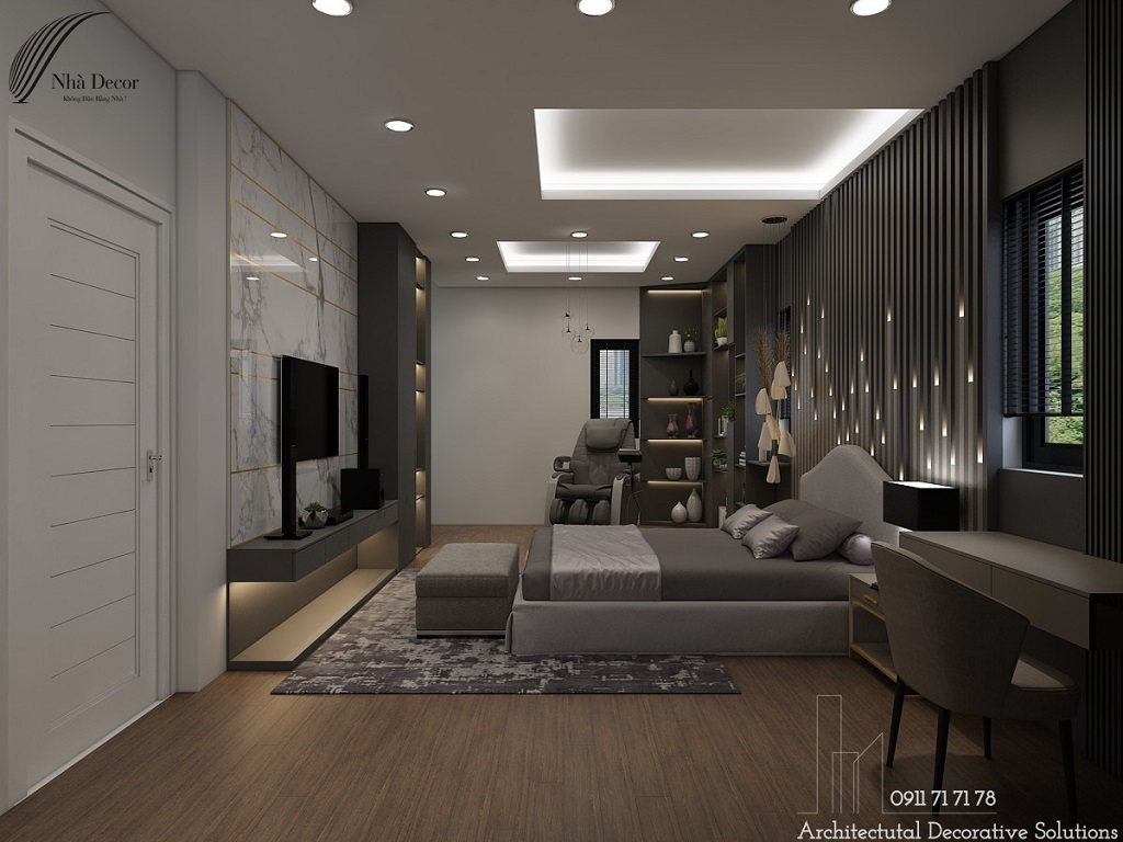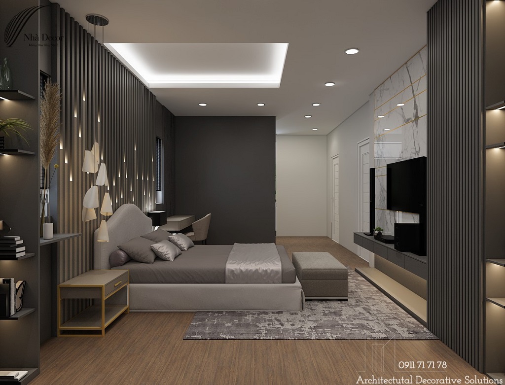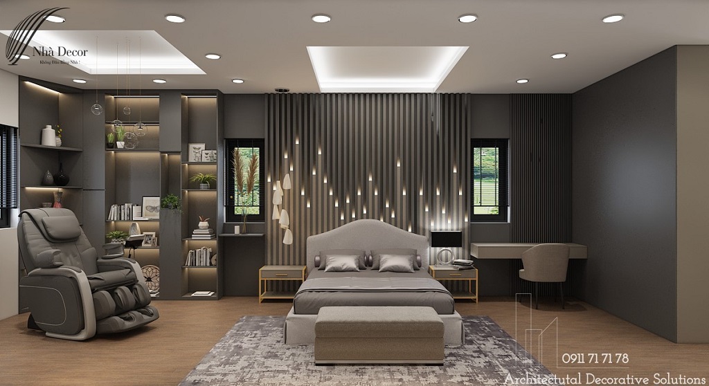 Phòng ngủ với tông màu tối ấn tượng với thiết kế nội thất sang trọng