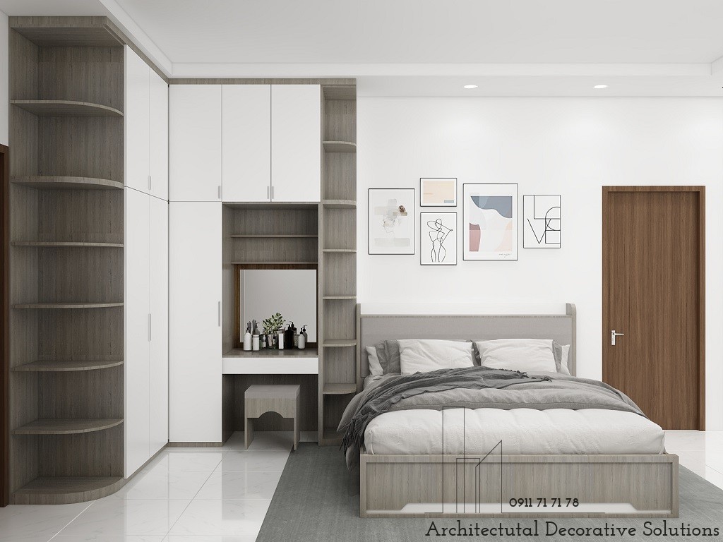 Căn phòng không chỉ có giường hộc kéo thông minh, tủ quần áo, bàn trang điểm mà còn được trang hoàng những bức tranh treo tượng độc đáo,Tất cả những đồ vật ấy, đã được khéo léo sắp xếp để không trở nên rườm mà mà vô cùng ăn ý với ăn. Chính sự gắn kết ấy đã giúp thổi hồn vào từng đồ vật và biến chúng thành một bức tranh vô cùng sống động.