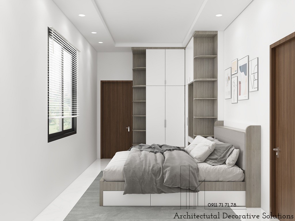 Phòng ngủ mang vẻ đẹp hiện đại, đơn giản nhưng đáp ứng đầy đủ nhu cầu, sở thích cá nhân của gia chủ.