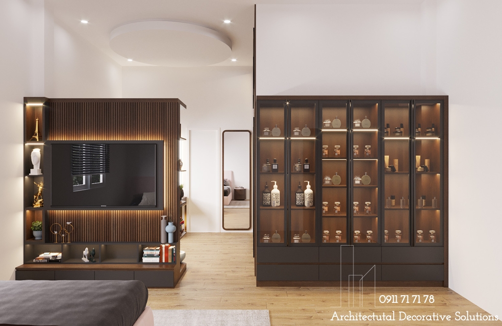 Chiếc tủ kính trang trí phòng ngủ được ưa chuộng rộng rãi trong không gian phòng ngủ của mỗi gia đình hiện đại ngày nay. Chúng là một món đồ trang trí không thể thiếu và giúp cho không gian của nhà trở nên sang trọng, thời thượng. Với chất liệu đa dạng, tủ kính trang trí phòng ngủ luôn là sự lựa chọn của hầu hết mọi gia đình Việt từ xưa đến nay. Cho đến ngày nay, những chiến tủ kính trang trí phòng ngủ vẫn được các nhà thiết kế lựa chọn để sáng tạo cũng như tạo ra nhiều kiểu không gian đầy hiện đại, và mang vẻ đẹp lôi cuốn.