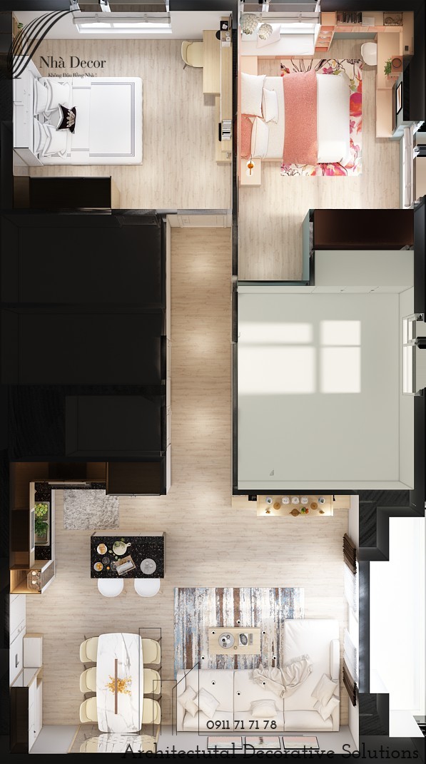 Thiết kế nội thất căn hộ Botanic 2 phòng ngủ với phong cách hiện đại mang sắc thái tươi sáng, ấm áp. Anh/ chị hãy cùng Nhà Decor tham khảo mẫu thiết kế này nhé!