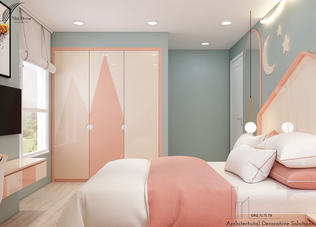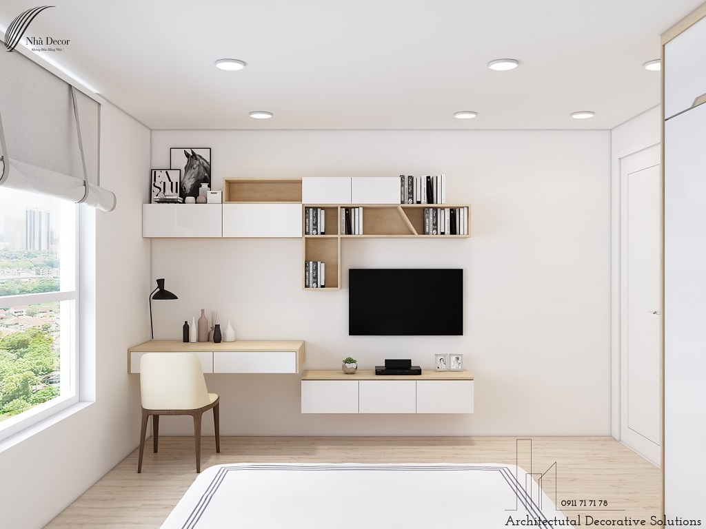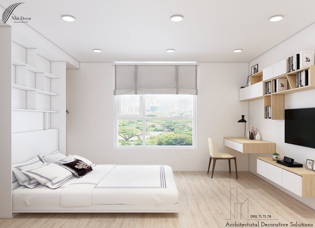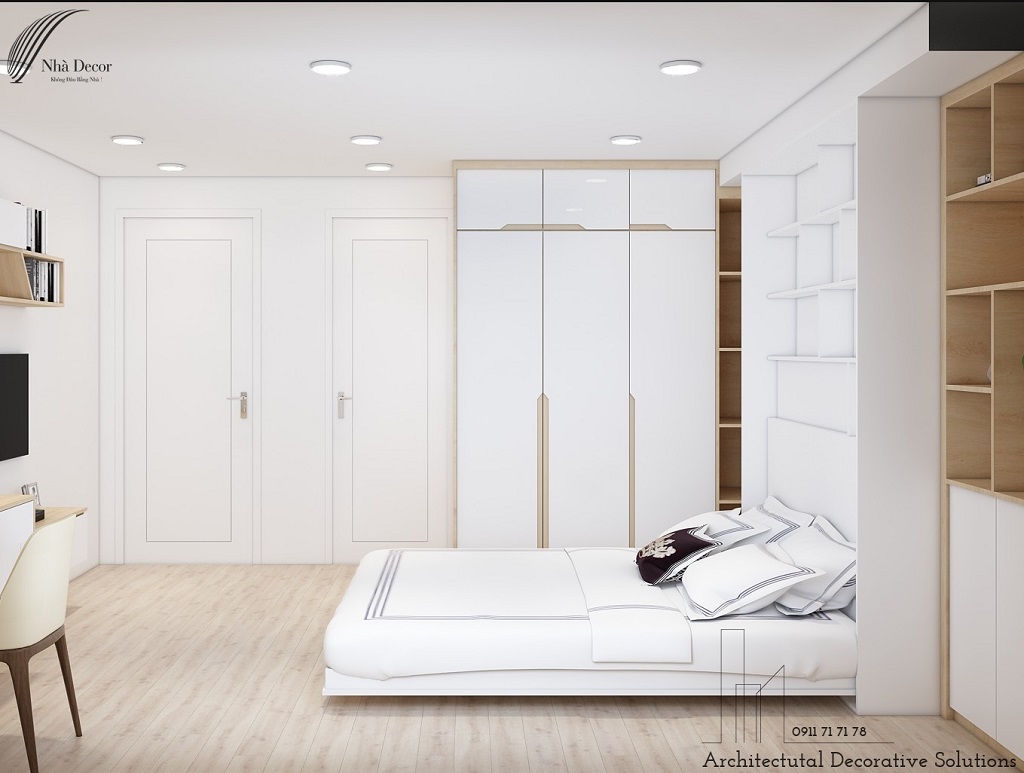 Phòng ngủ lớn với nội thất gỗ đa năng đẹp tiện nghi