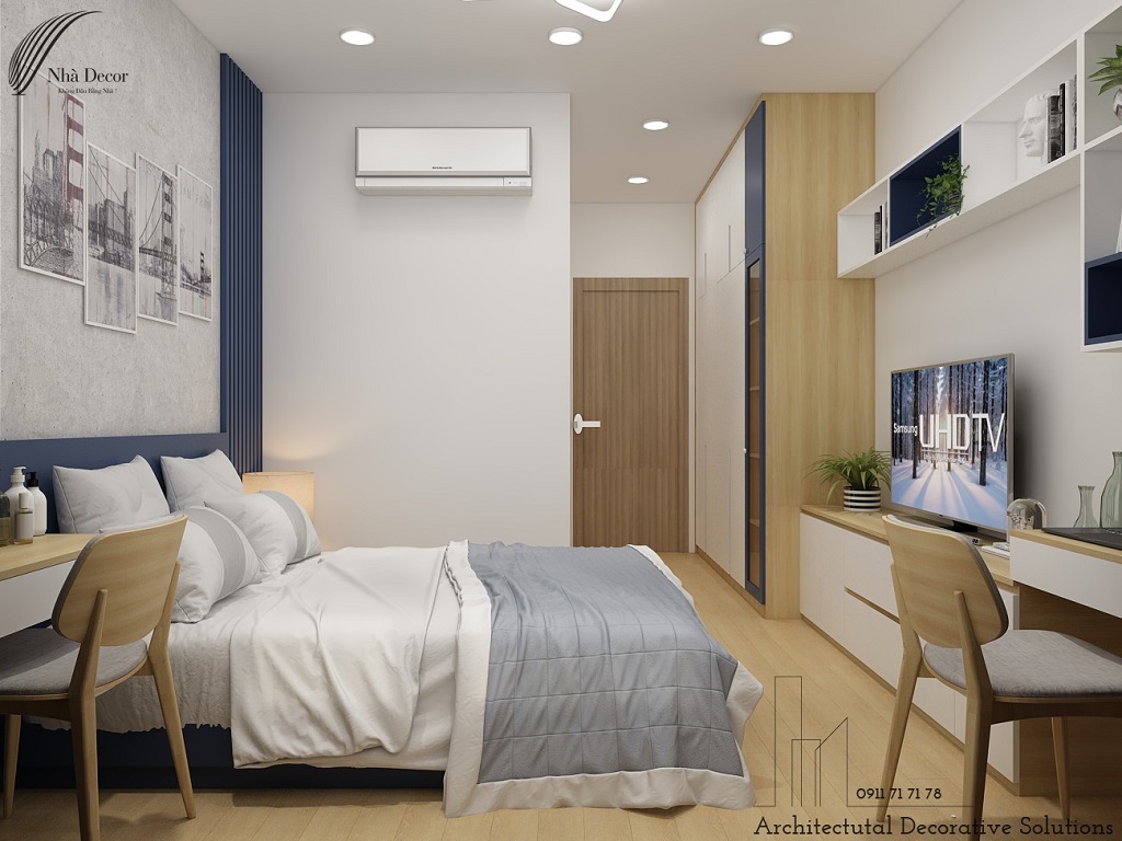 Đồng bộ với thiết kế nội thất căn hộ hiện đại. Phòng ngủ được thiết kế đơn giản nhưng vô cùng tinh tế