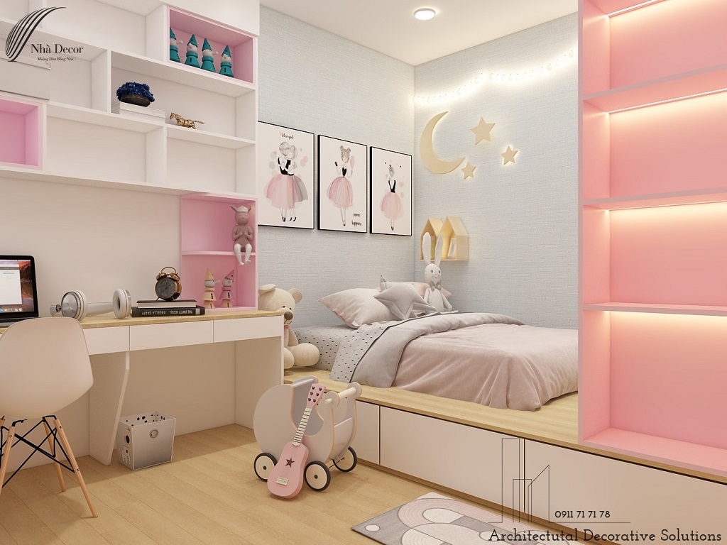 Phòng ngủ cho bé với tông màu hồng đáng yêu