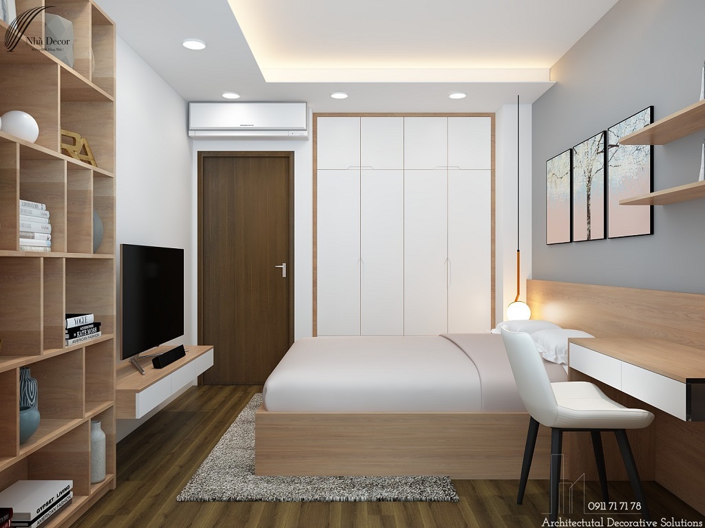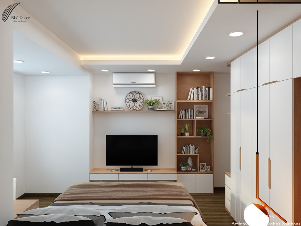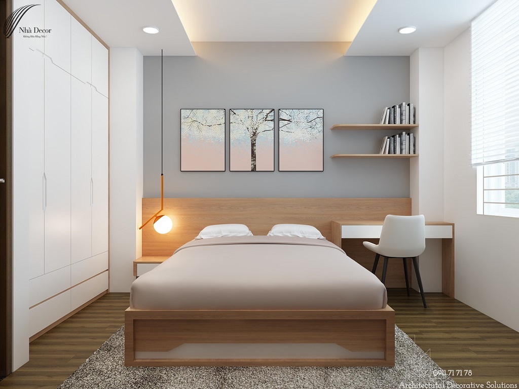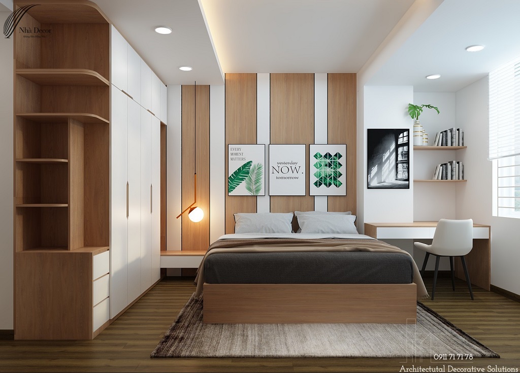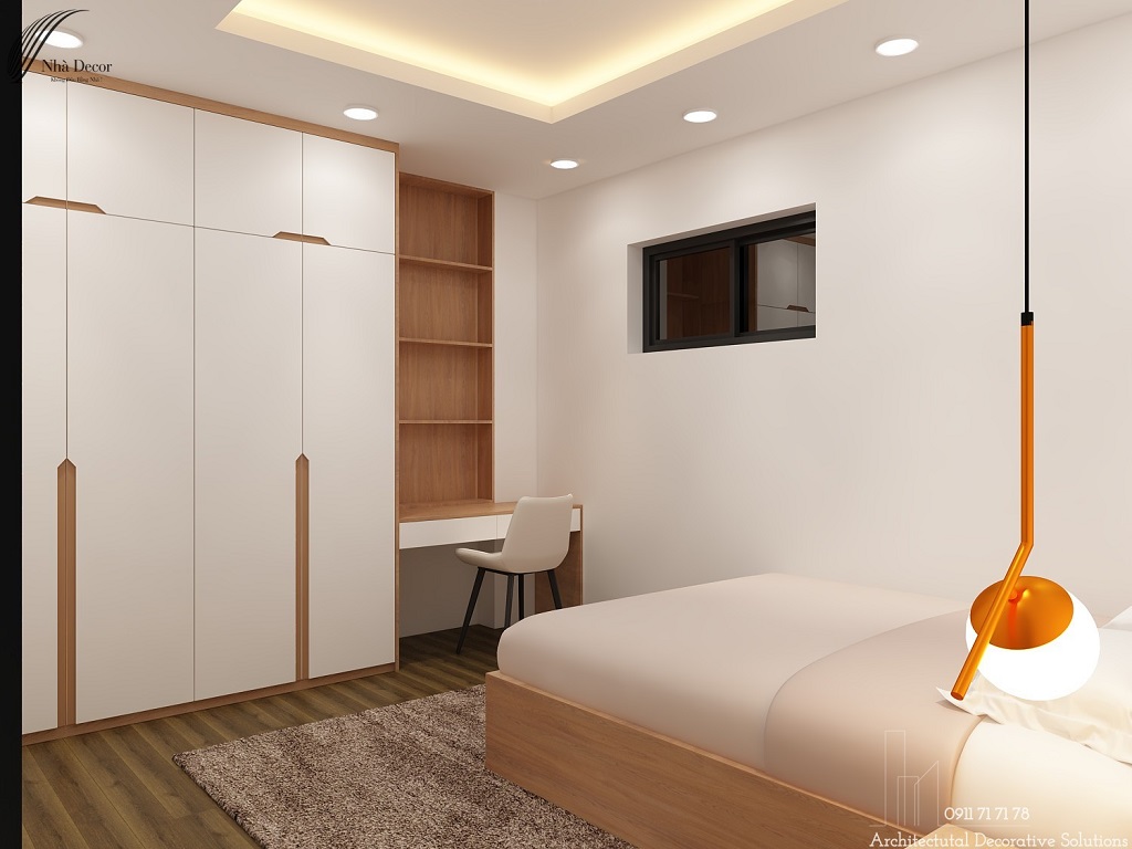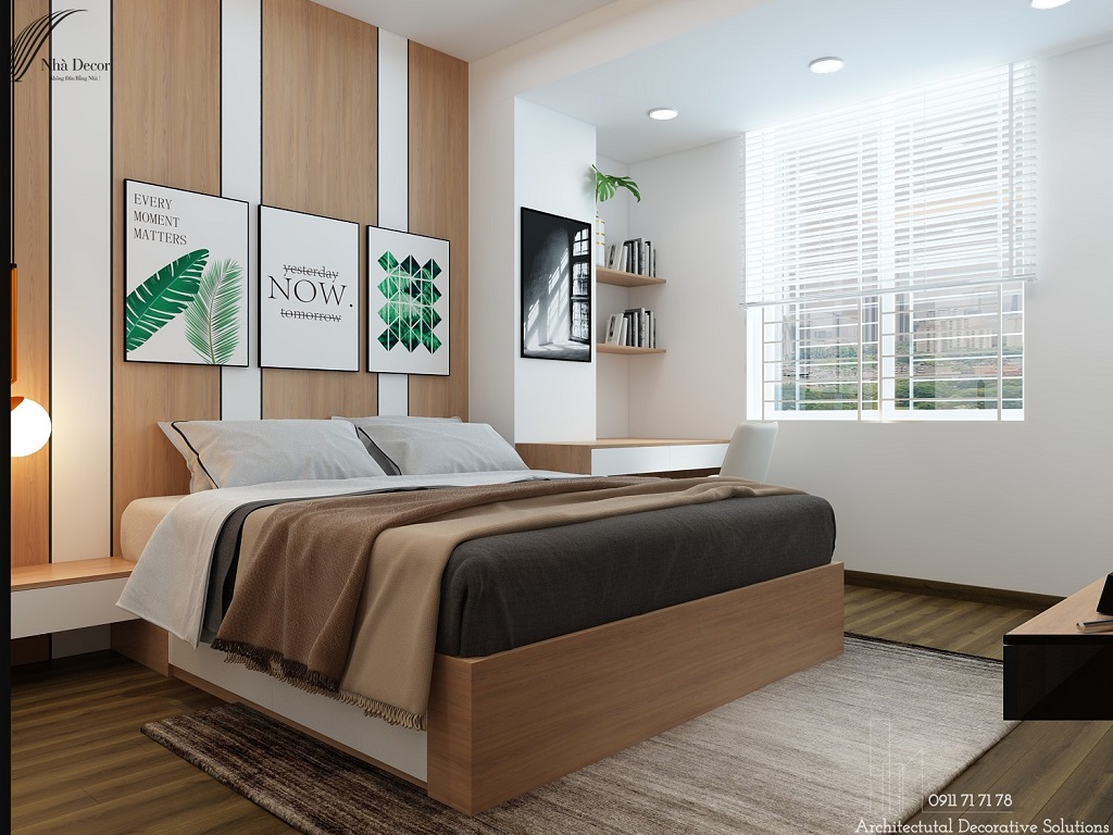 Phòng ngủ với tông màu ấm áp đem lại cảm giác yên bình, thoải mái sau một ngày làm việc mệt mỏi.