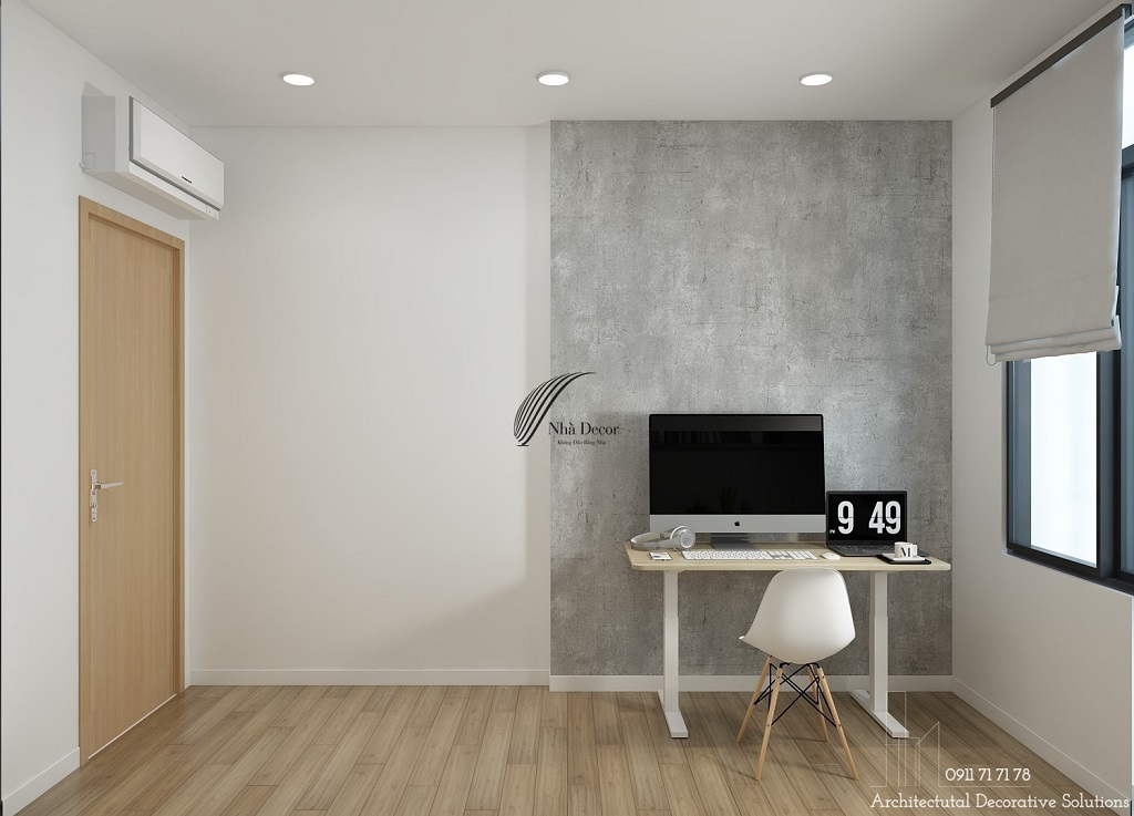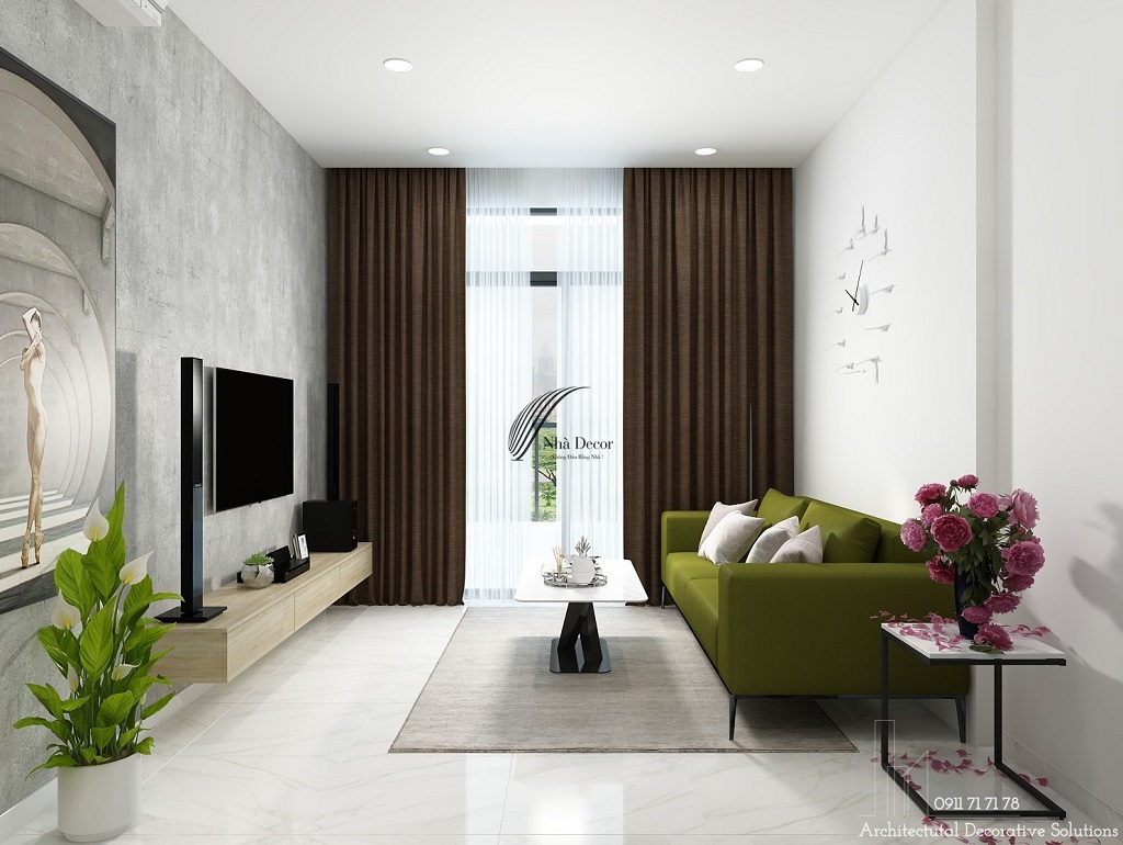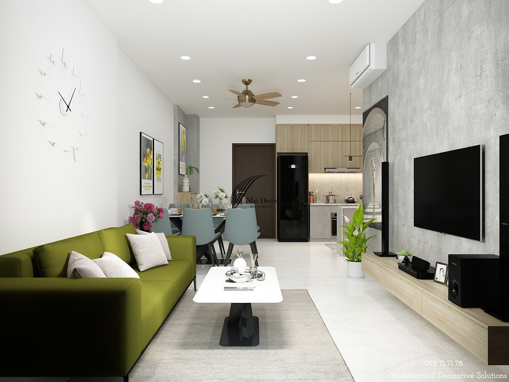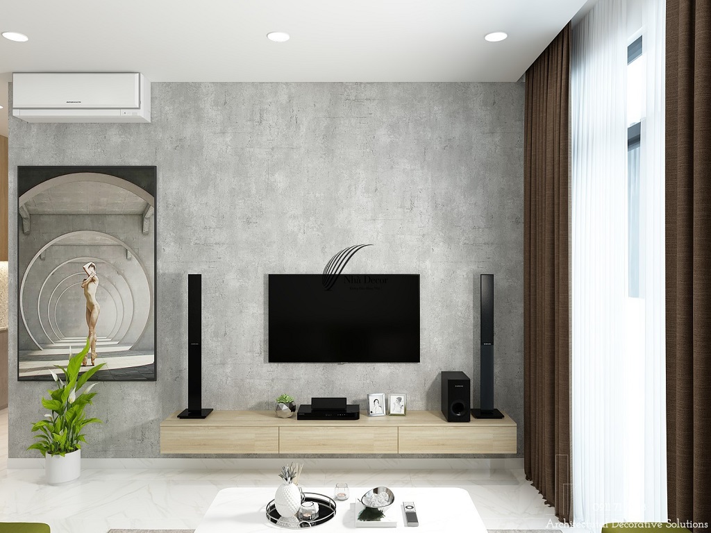 Thiết kế loại bỏ kệ tivi để tăng thêm không gian cho căn phòng.