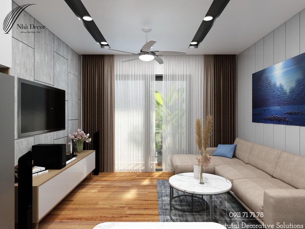 Từ sofa đến kệ tivi mọi thứ đều được kết hợp khéo léo, tạo nên không gian đơn giản nhưng cực kỳ ấm áp.