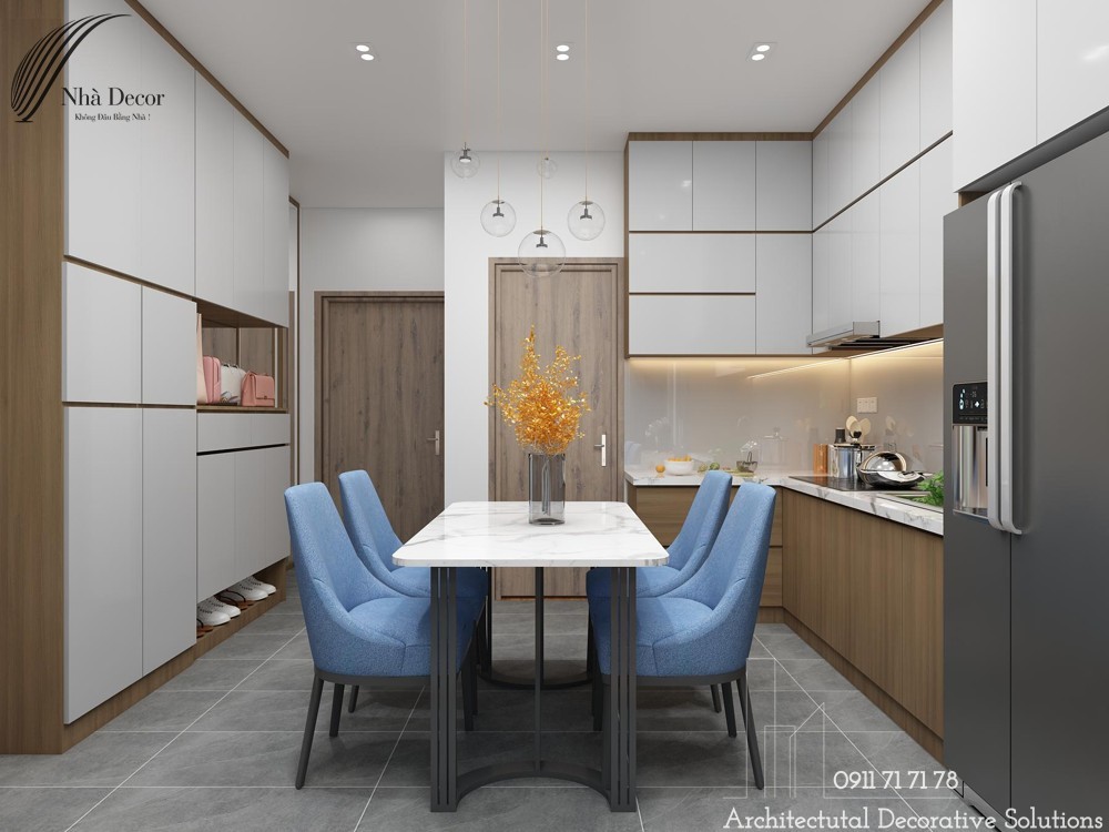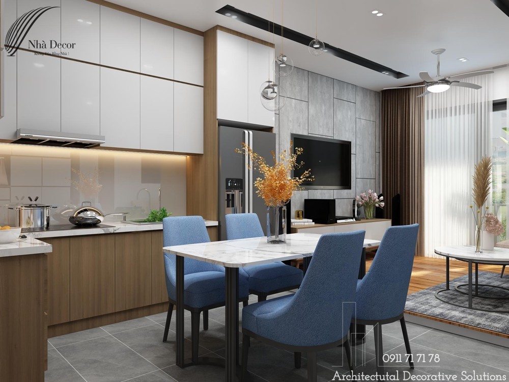 Bàn ghế ăn tông màu xanh sang trọng, cao cấp nhưng vô cùng ấm áp