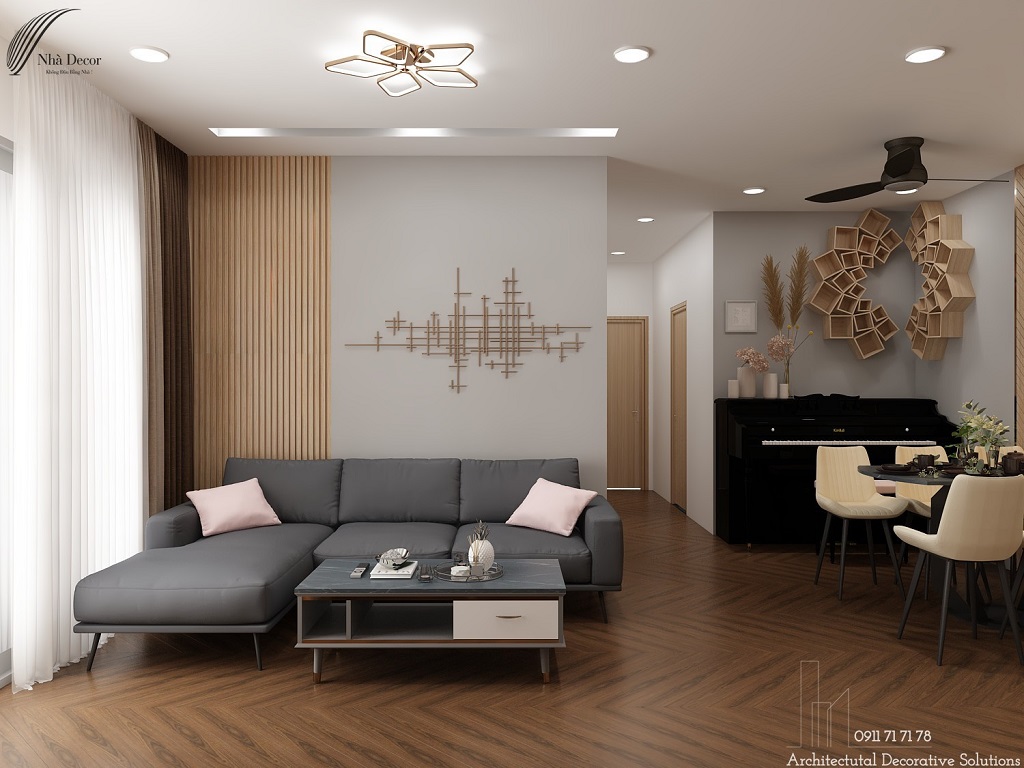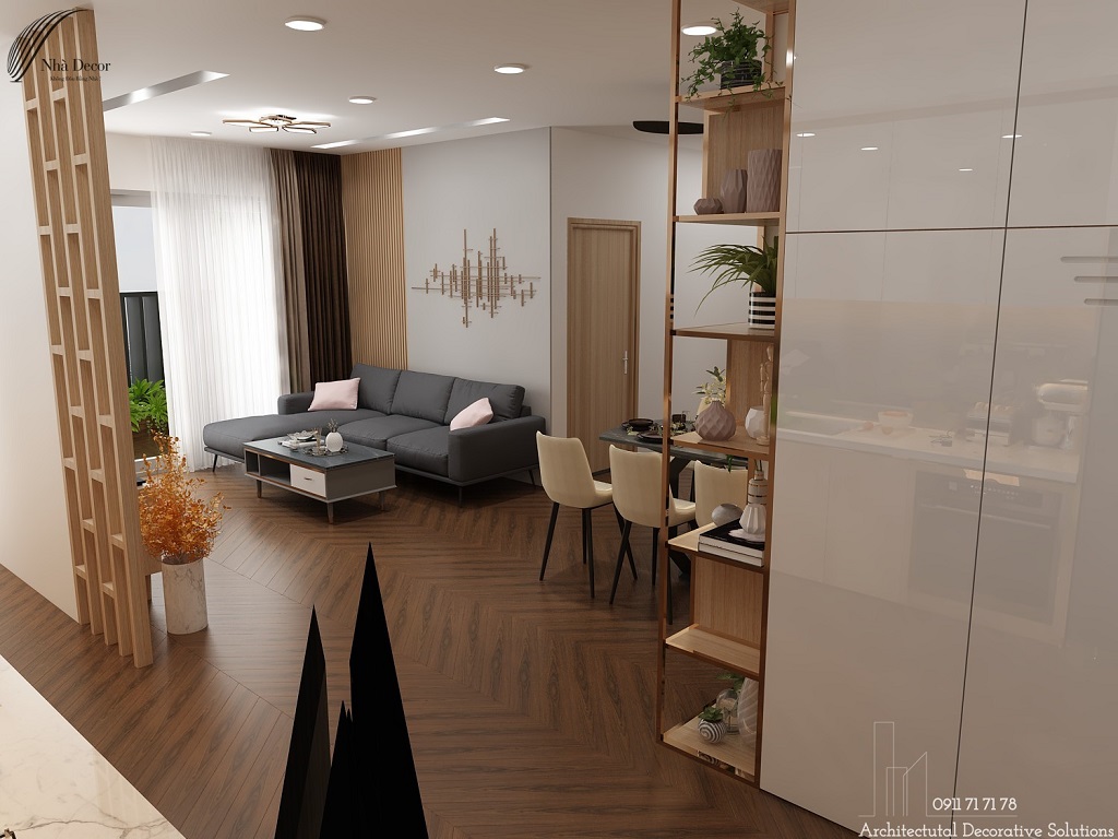 Thiết kế nội thất hiện đại được thể hiện rất tinh tế và sáng tạo bằng cách thiết kế phá cách từ ghế sofa đến bàn ghế ăn đều tạo ấn tượng đặc biệt cho khách đến thăm nhà. Bên cạnh đó, thiết kế hướng ánh sáng nên ban công góp phần lớn tạo độ cân bằng cho thiết kế, giúp không gian nội thất sinh hoạt chung trở nên thoáng và rộng hơn rất nhiều.