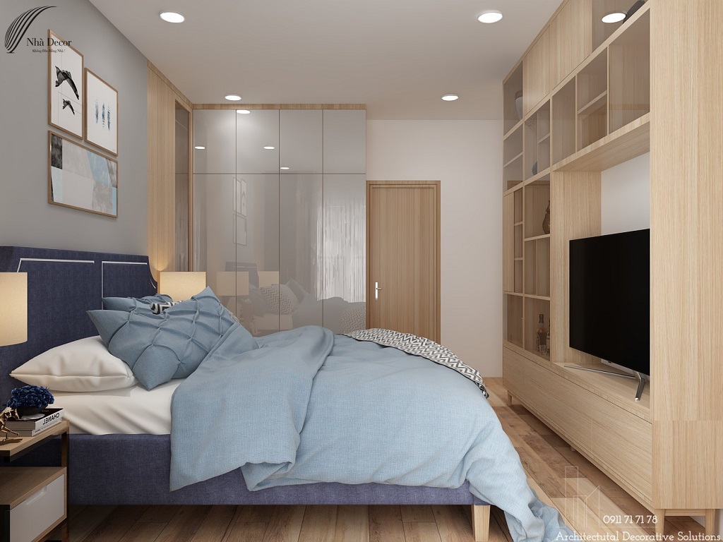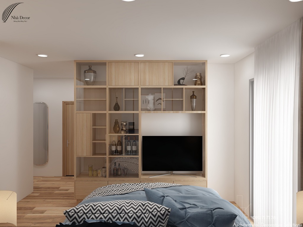 Căn phòng được thiết kế đơn giản, kệ tivi độc đáo nên cá tính riêng cho chủ căn phòng.