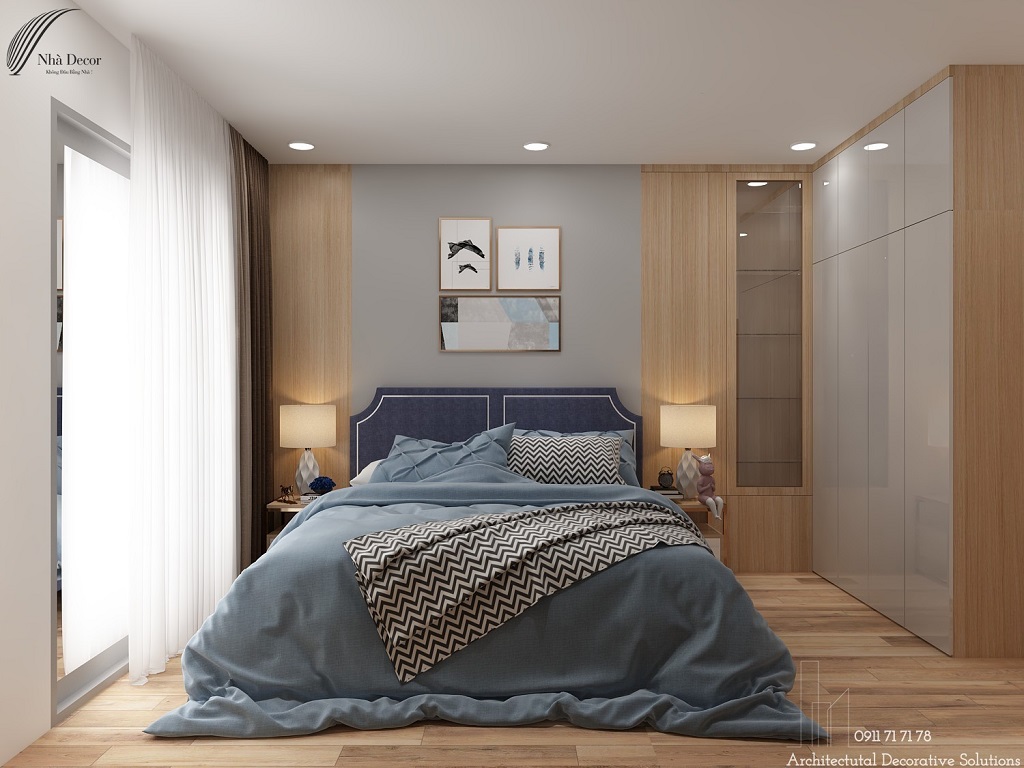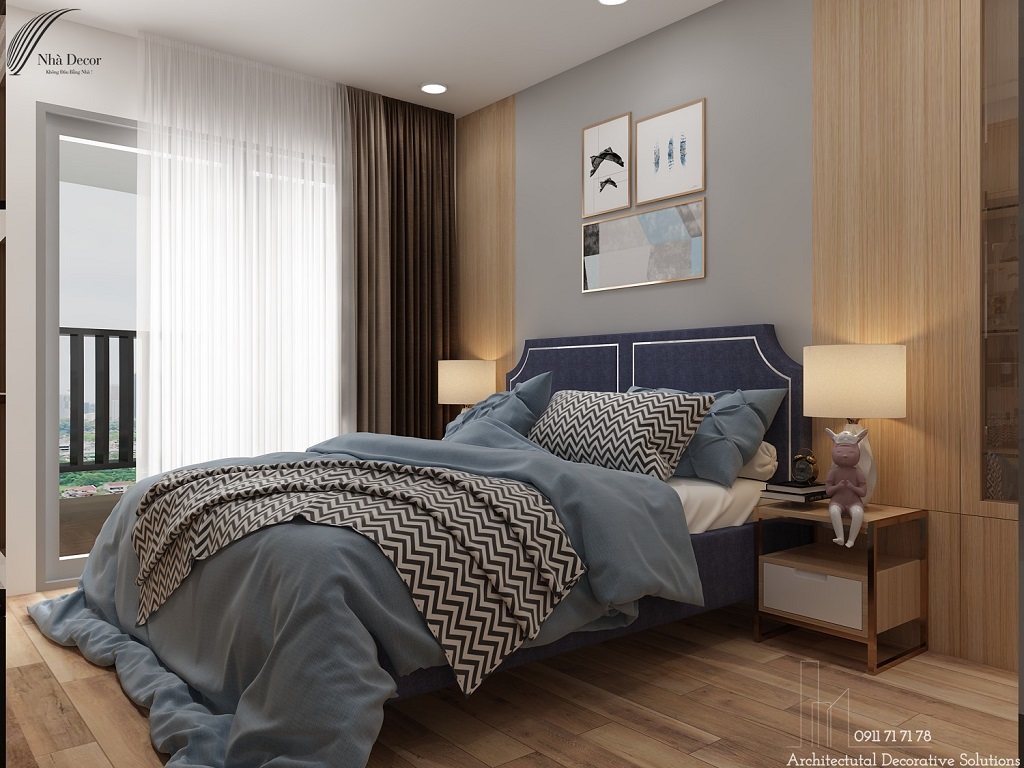 Phòng ngủ master sử dụng tông màu tối nhẹ nhàng, phòng ngủ Vinhomes Central Park tạo cảm giác nhẹ nhàng dễ chịu.