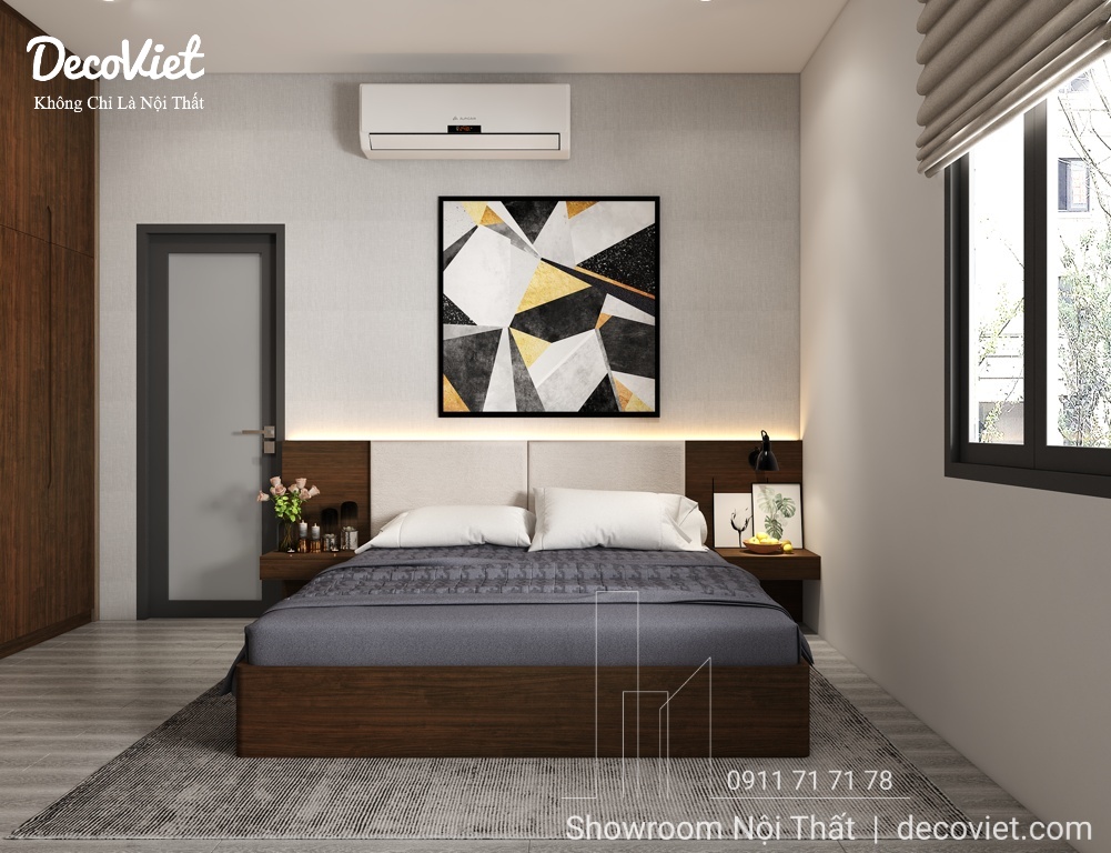 Không gian phòng ngủ được bố trí nội thất hợp lý, tạo không gian rộng rãi và thoáng đãng hơn