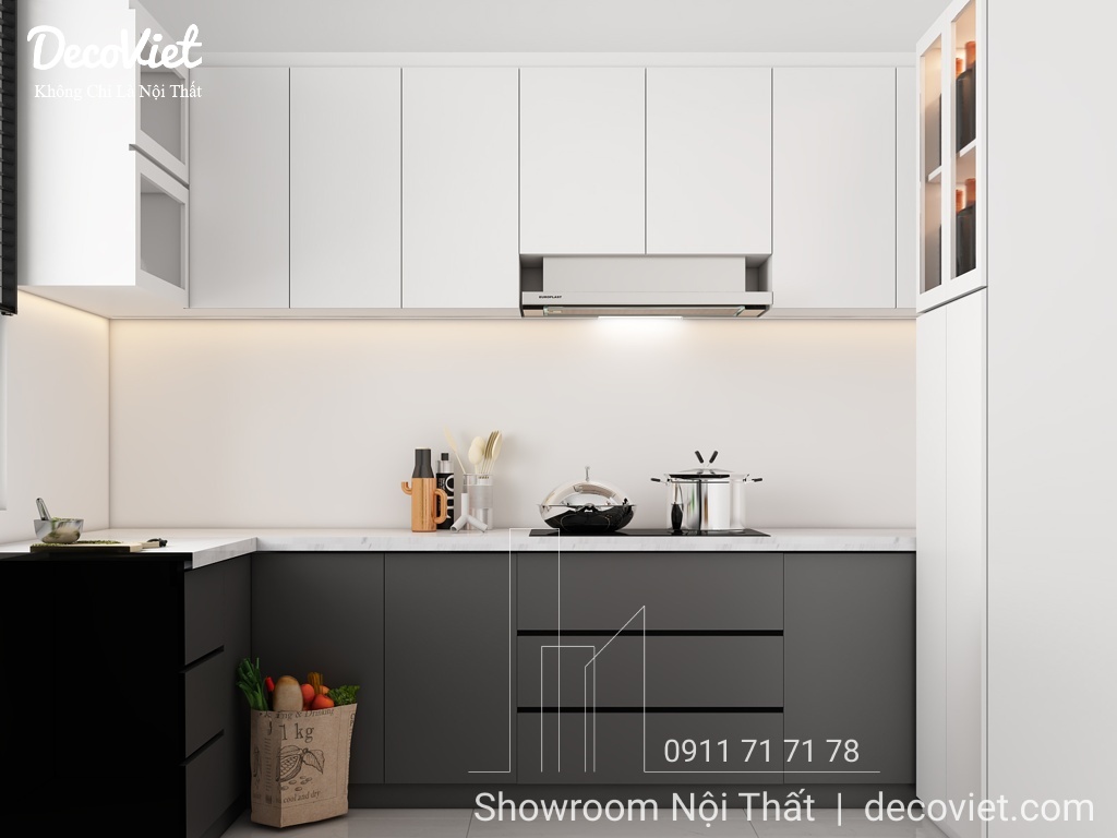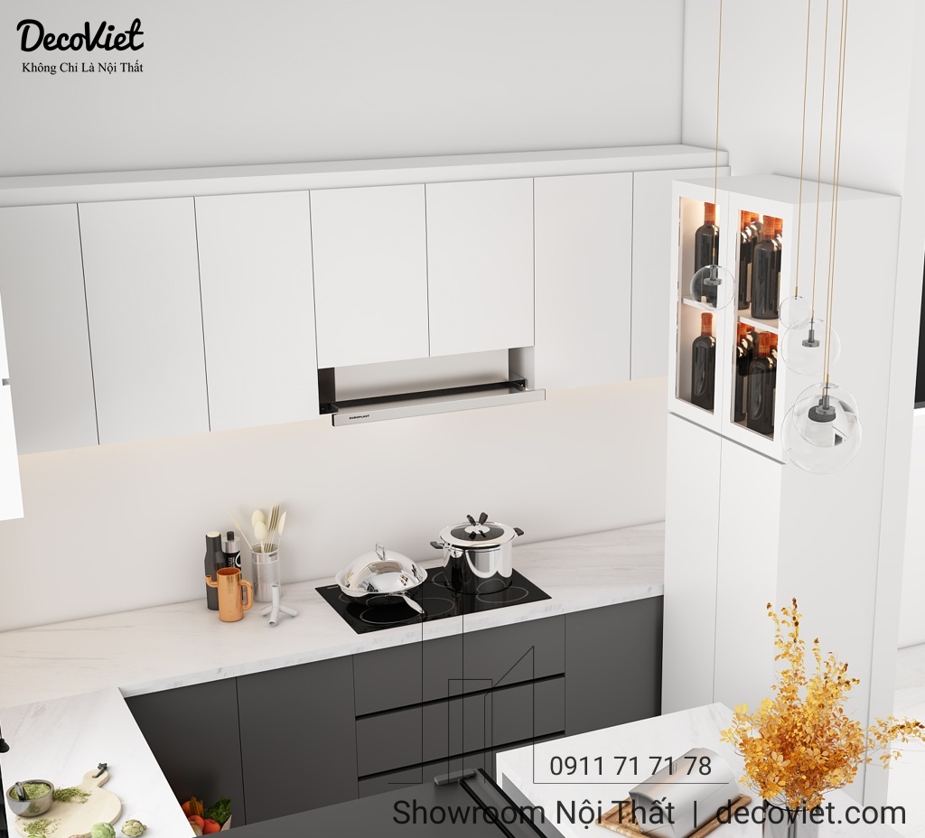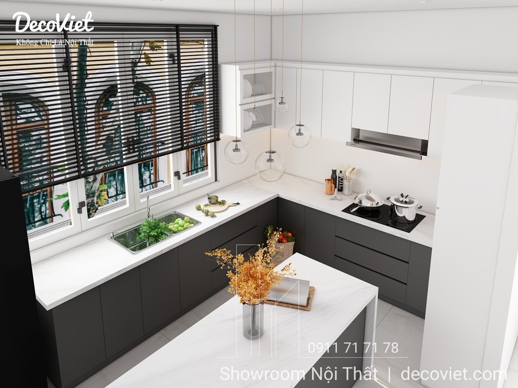 Luôn cập nhật xu hướng thiết kế thi công nội thất phòng bếp đẹp, hiện đại cho nhà phố, DecoViet mang đến một không gian nấu nướng thoải mái và tiện nghi cho bà nội trợ, ấm cúng và thân thiện cho cả gia đình khi dùng bữa mỗi ngày. Những ý tưởng trang trí, thiết kế thi công tủ bếp, bàn ghế ăn và bố trí chúng một cách hợp lý theo sở thích và ý muốn của gia chủ, chọn những kiểu dáng đẹp, hợp xu hướng mới nhất giúp tăng tính thẩm mỹ cho tổng thể ngôi nhà.