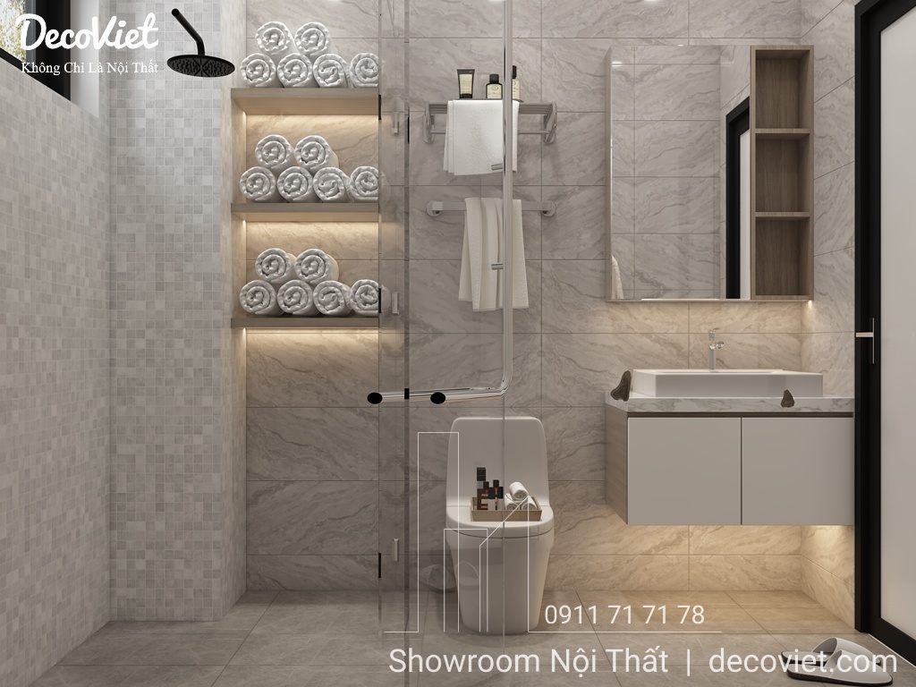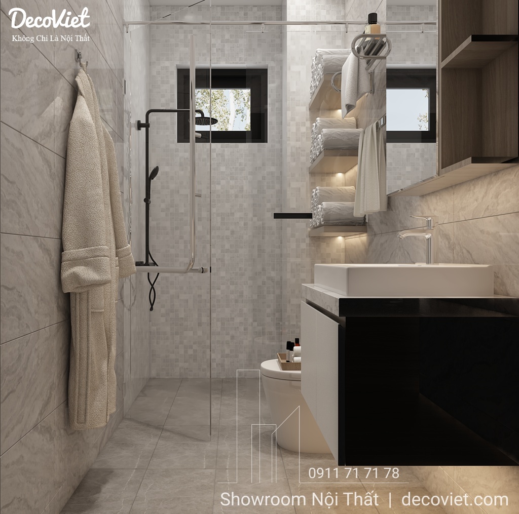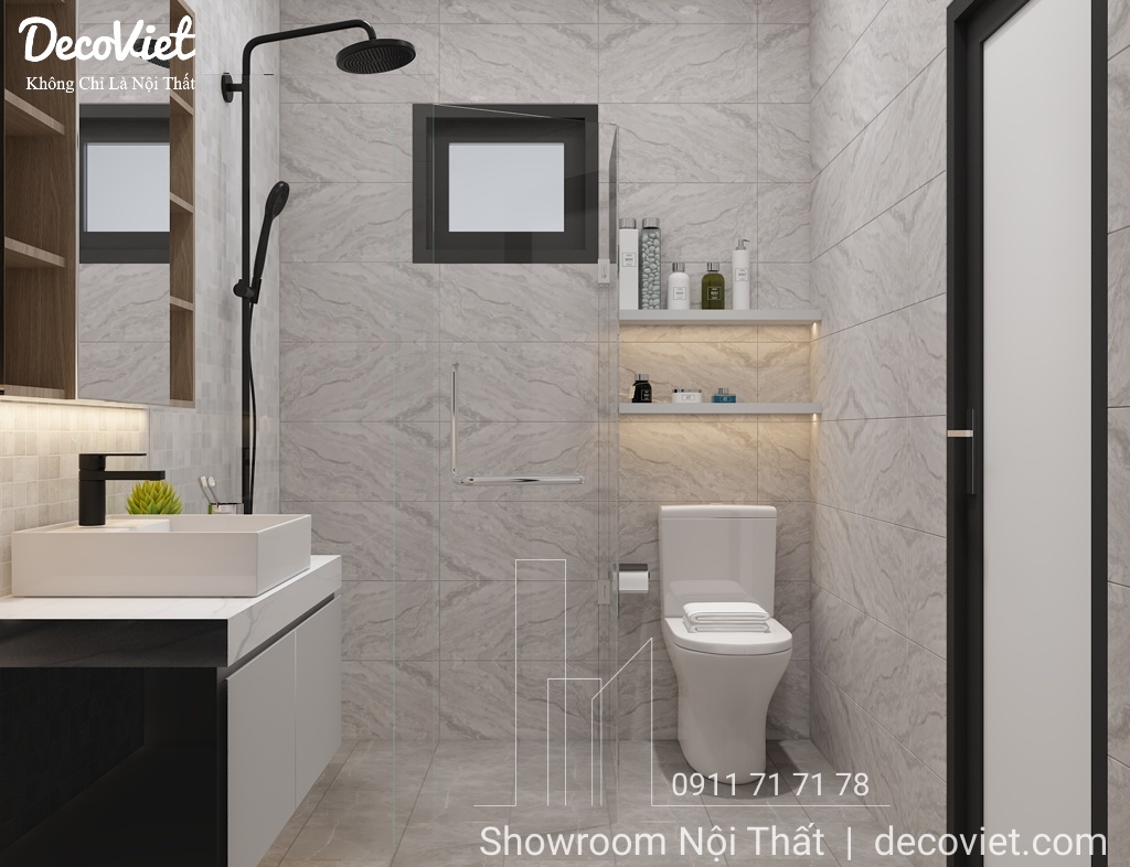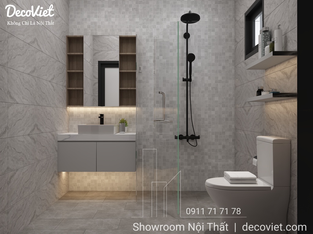 Thiết kế nội thất nhà vệ sinh chung luôn là nỗi băn khoăn của nhiều người, làm thế nào để vừa thể hiện được công năng cần thiết, lại vừa thẩm mỹ và hài hoà với tổng thể thiết kế căn nhà. Mẫu phòng tắm này phù hợp cho mọi không gian nội thất từ hộ gia đình, nhà chung cư, nhà biệt thự, nhà phố,...
