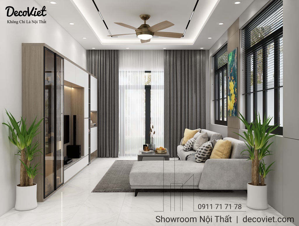 Nhà chính là nơi gợi mở sự thoải mái, giúp giải tỏa những căng thẳng, mệt mỏi và cũng chính là nơi mỗi thành viên đều cảm nhận được hơi ấm của tình thân. Vì thế, thiết kế thi công nội thất nhà phố đẹp mang đến cho không gian sự tiện nghi, đẳng cấp, sang trọng là điều mà DecoViet luôn quan tâm và hướng đến. Nhằm mang lại một tổ ấm đảm bảo vẻ đẹp thẩm mỹ mà vẫn đầy đủ công năng, chúng tôi xin giới thiệu đến bạn mẫu Thiết Kế Nội Thất Nhà Phố Đồng Nai 3 Phòng Ngủ Tiện Nghi mà chúng tôi vừa hoàn thành, cam kết mang đến sự gần gũi, thể hiện được gu thẩm mỹ và cá tính riêng của gia chủ.